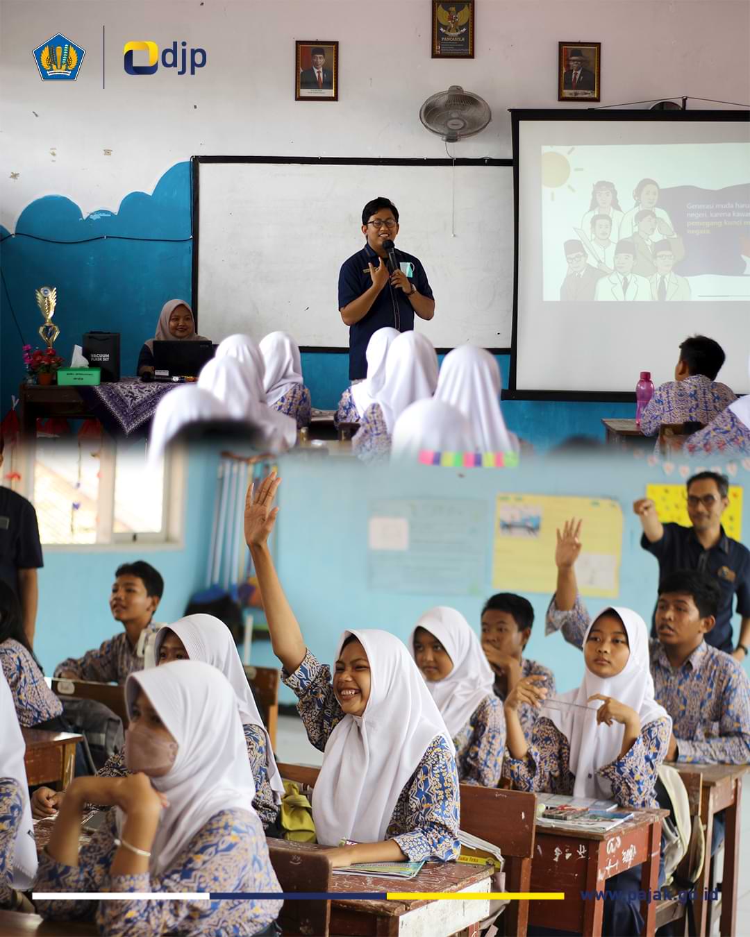 Kantor Pelayanan Pajak (KPP) Pratama Karawang memberikan edukasi perpajakan dan keuangan negara kepada peserta didik di sekolah SMP Negeri 5 Karawang, Jawa Barat (Rabu, 22/10). Kegiatan ini dilaksanakan di dua kelas dengan peserta didik dari Kelas 8 dan 9.