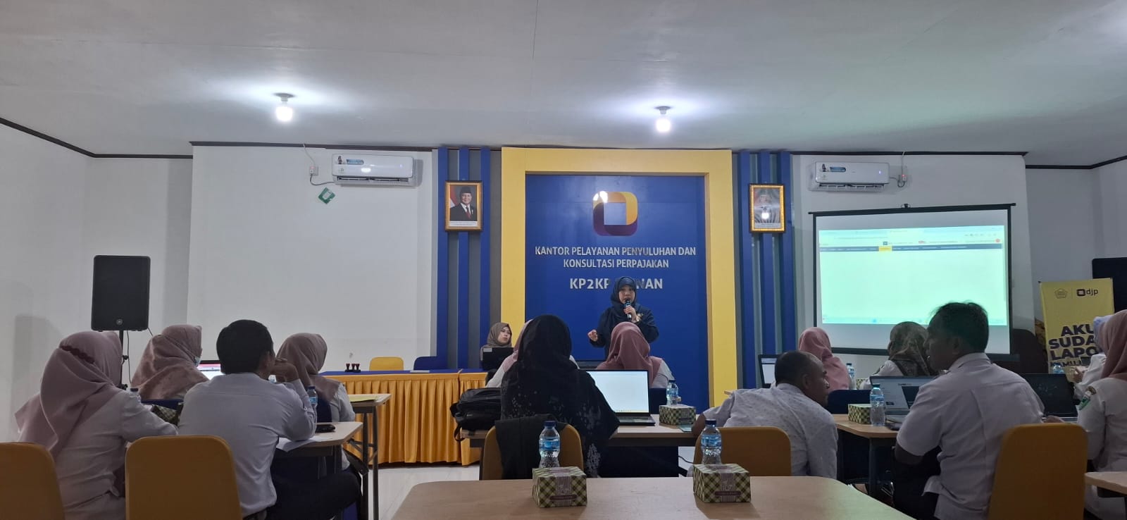 Kepala KP2KP Painan, Anna Damayanti, menyampaikan materi secara langsung dalam kegiatan tersebut. Ia menjelaskan bahwa fokus utama bimtek ini adalah pelatihan penginputan data perpajakan ke dalam sistem Coretax DJP, pembuatan bukti potong dan pungut, serta tata cara pembayaran pajak secara mandiri menggunakan kode billing elektronik.