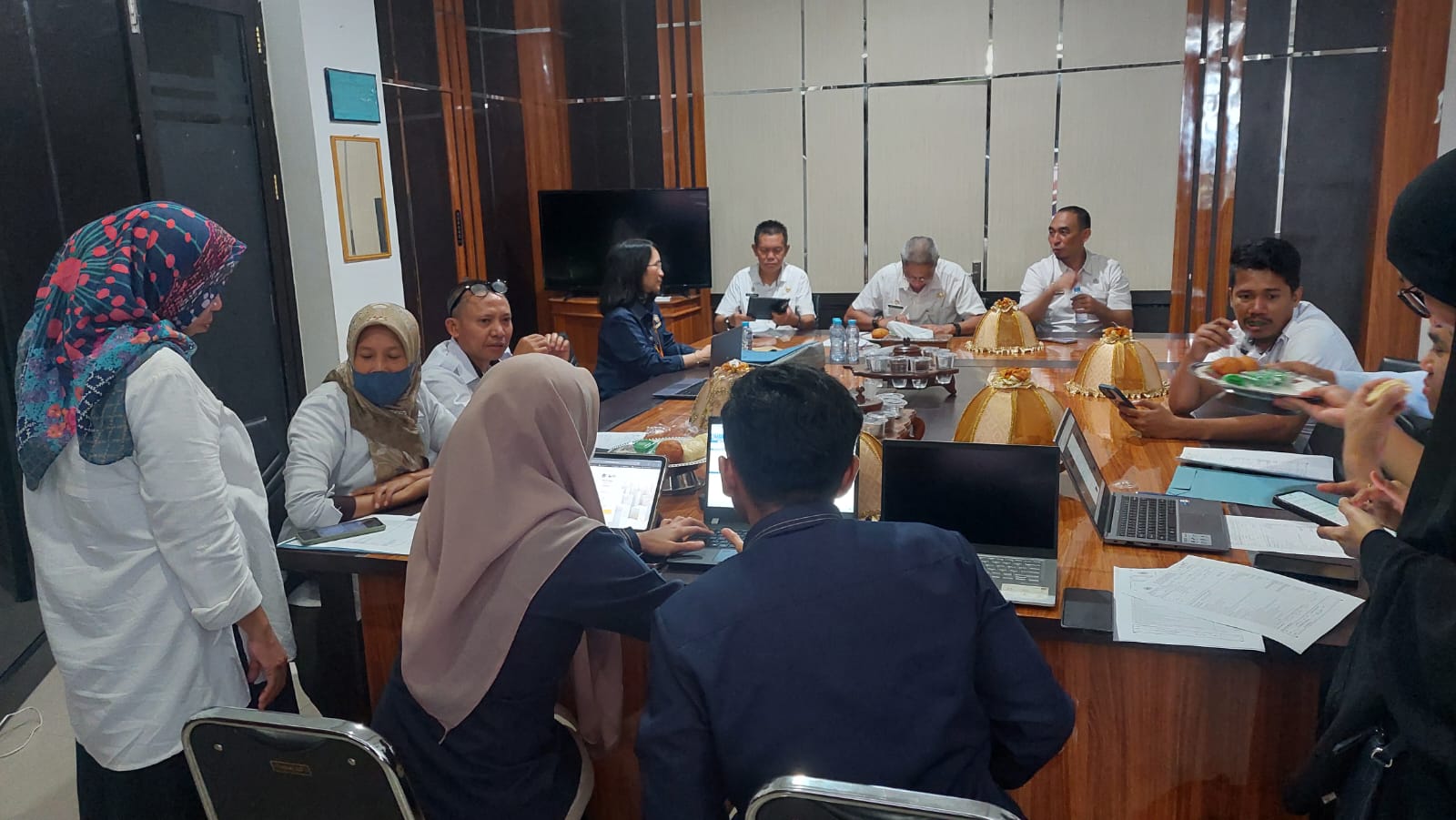 Kepala BKAD Kab Takalar, Rahmansyah Lantara, dan Sekretaris BKAD, Amiluddin Barlian, menyambut kedatangan Kepala KP2KP Takalar, Creschenthum Srimariastuti Boroh, beserta tim di ruang rapat BKAD.
