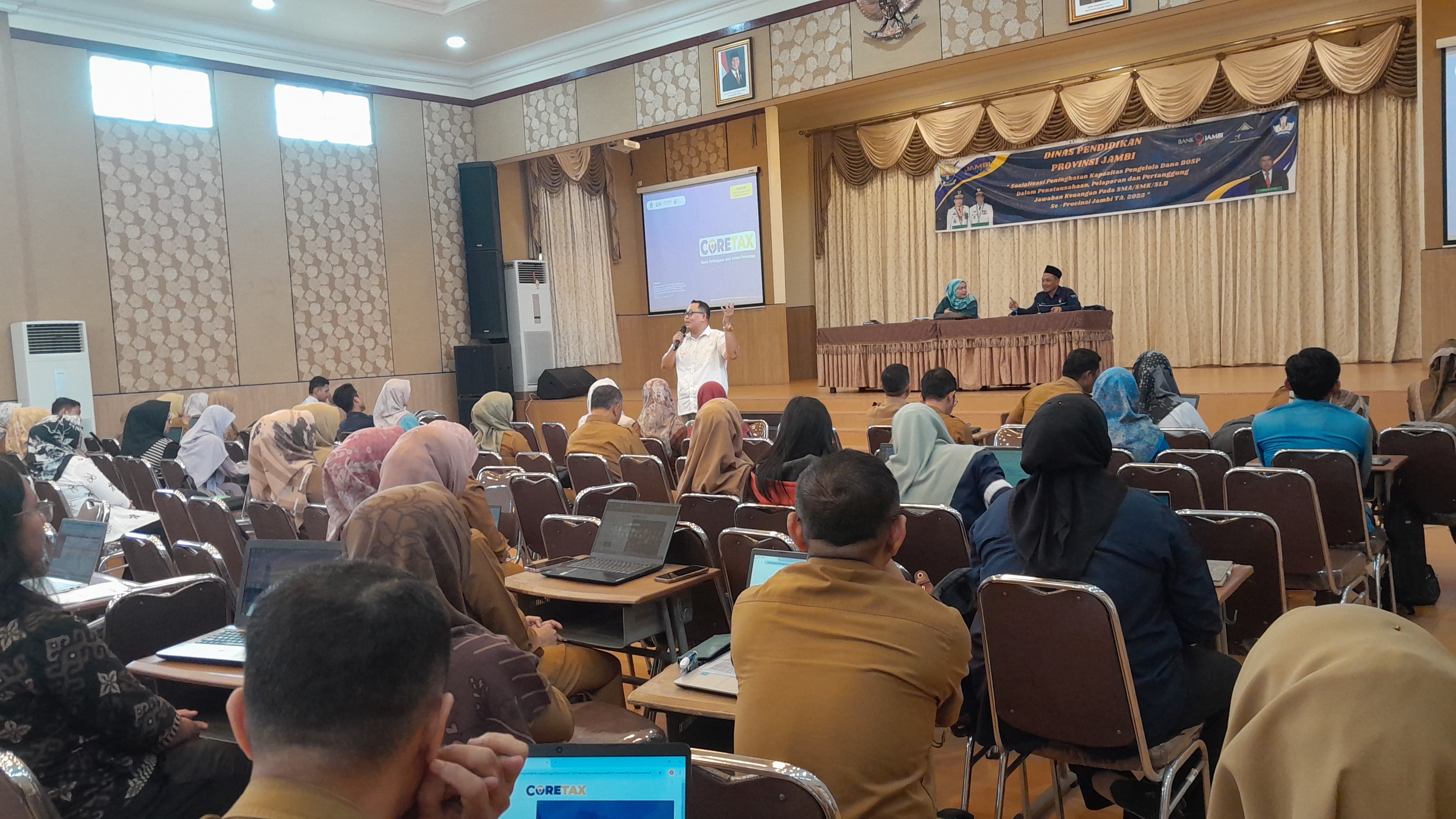 Kegiatan ini diselenggarakan oleh Dinas Pendidikan Provinsi Jambi. Acara ini diikuti oleh Kepala Sekolah, Pengelola Keuangan dan Operator BOSP SMA/SMK/SLB negeri dan swasta di wilayah Kerja Dinas Pendidikan Provinsi Jambi. Kegiatan ini diselenggarakan untuk meningkatkan pemahaman dan keterampilan pengelola keuangan dana BOS dalam pemenuhan kewajiban perpajakan di unit masing-masing.