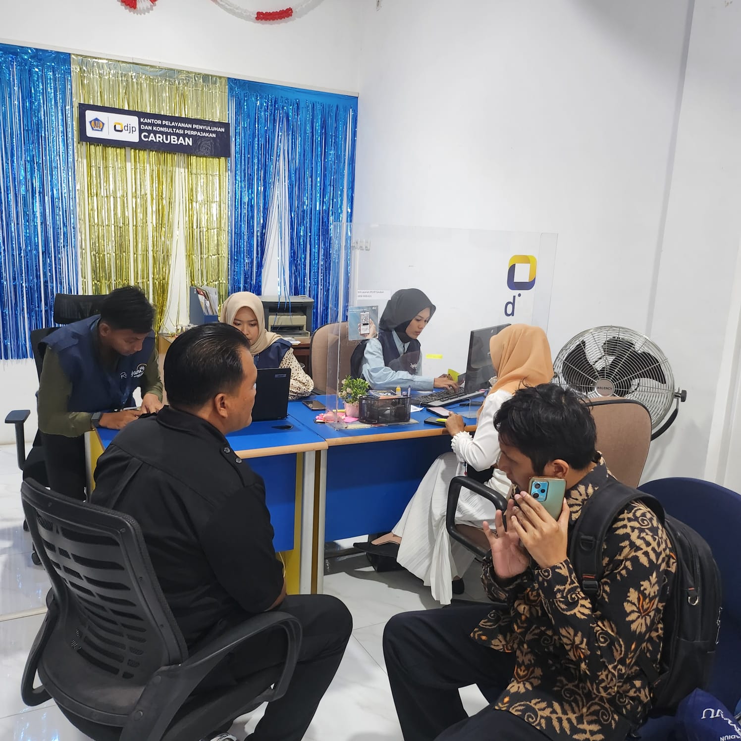 Kantor Pelayanan, Penyuluhan, dan Konsultasi Perpajakan (KP2KP) Caruban kedatangan Rachman IP, seorang ASN Guru Ilmu Sejarah Islam di MTsN 7 Kabupaten Madiun penyandang Tuna Netra sejak lahir di Kabupaten Madiun (Kamis, 20/2). Kedatangan Rachman adalah untuk mendapat pendampingan pelaporan Surat Pemberitahuan (SPT) Tahunan miliknya.