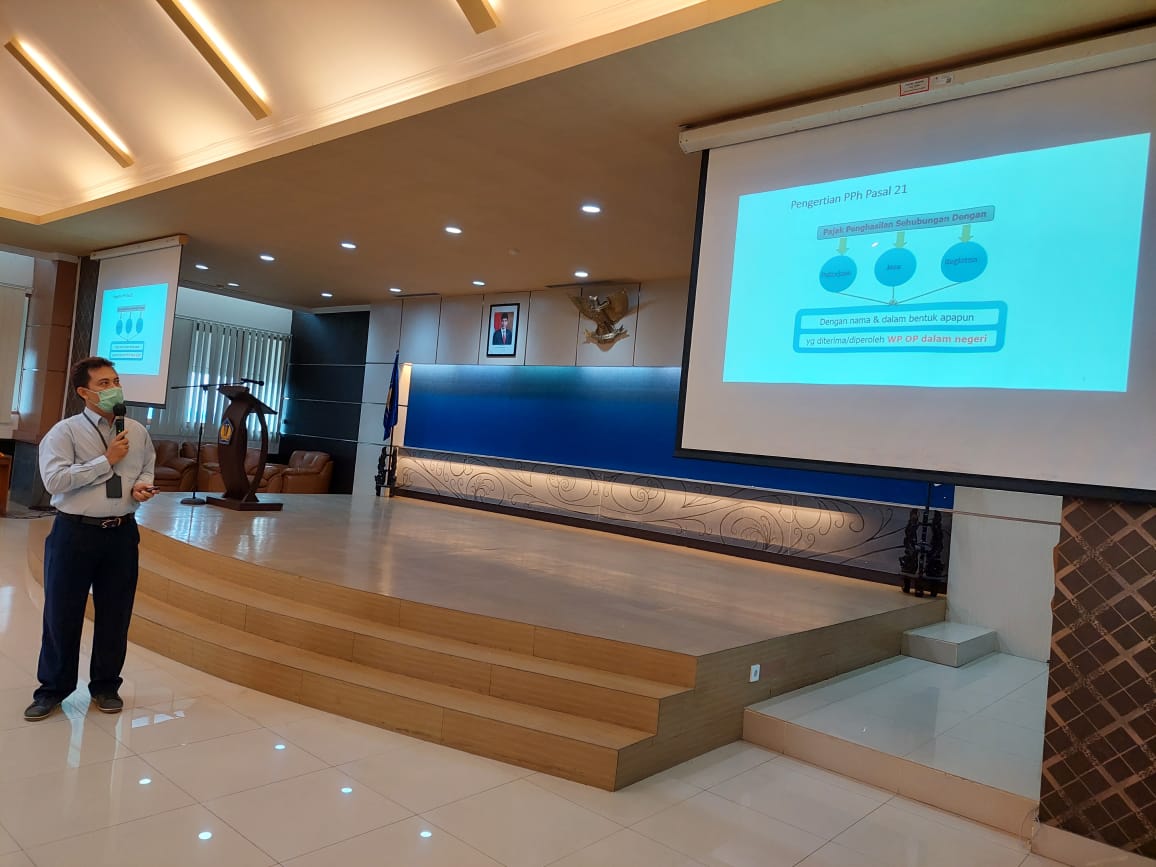 Victorinus dan Hero selaku pengisi materi memberikan penjelasan terkait tata cara pemotongan PPh Pasal 21.
