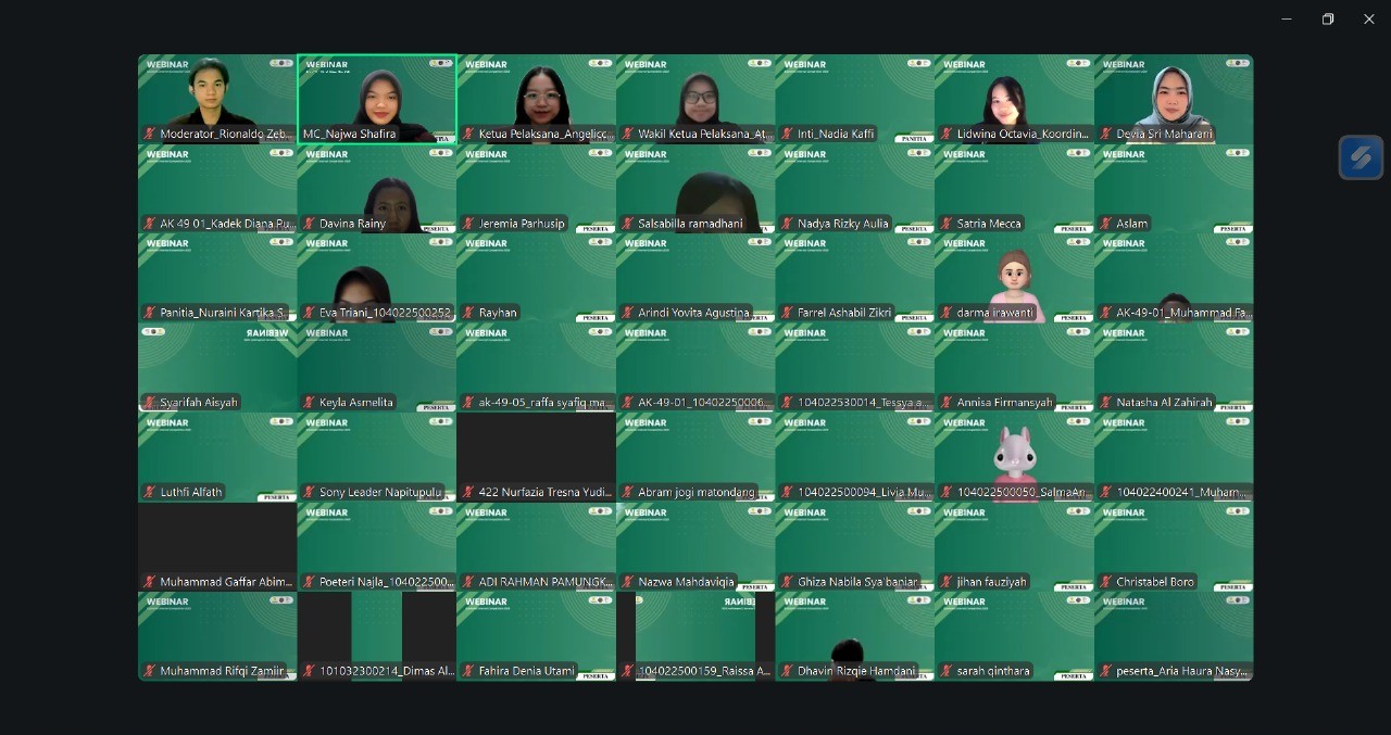 Webinar ini mengusung tema Peran Akuntansi dan Perpajakan dalam Mewujudkan Pembangunan Ekonomi Indonesia. Kegiatan itu bertujuan untuk memperkuat pemahaman mahasiswa mengenai peran profesi akuntan dan praktisi perpajakan dalam menghadapi perkembangan ekonomi berkelanjutan. Sebanyak 136 mahasiswa Fakultas Ekonomi dan Bisnis Telkom University mengikuti kegiatan ini.