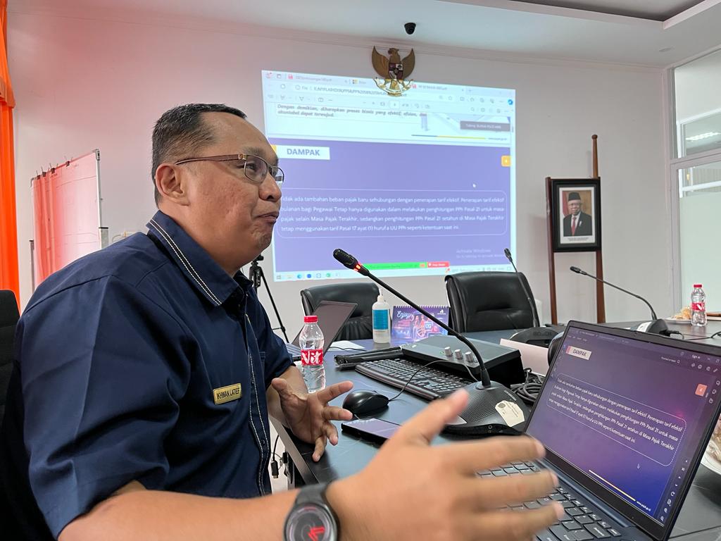 Tim dari Kantor Pelayanan Pajak (KPP) Pratama Samarinda Ulu melaksanakan sosialisasi di Rumah Sakit Umum Daerah (RSUD) Abdul Wahab Syahranie di Kota Samarinda (Rabu, 10/1). Fungsional Penyuluh Pajak KPP Pratama Samarinda Ulu Ikhwan Latief beserta tim melaksanakan sosialisasi Peraturan Pemerintah Nomor 58 Tahun 2023 tentang ketentuan terbaru tarif pemotongan Pajak Penghasilan (PPh) Pasal 21.