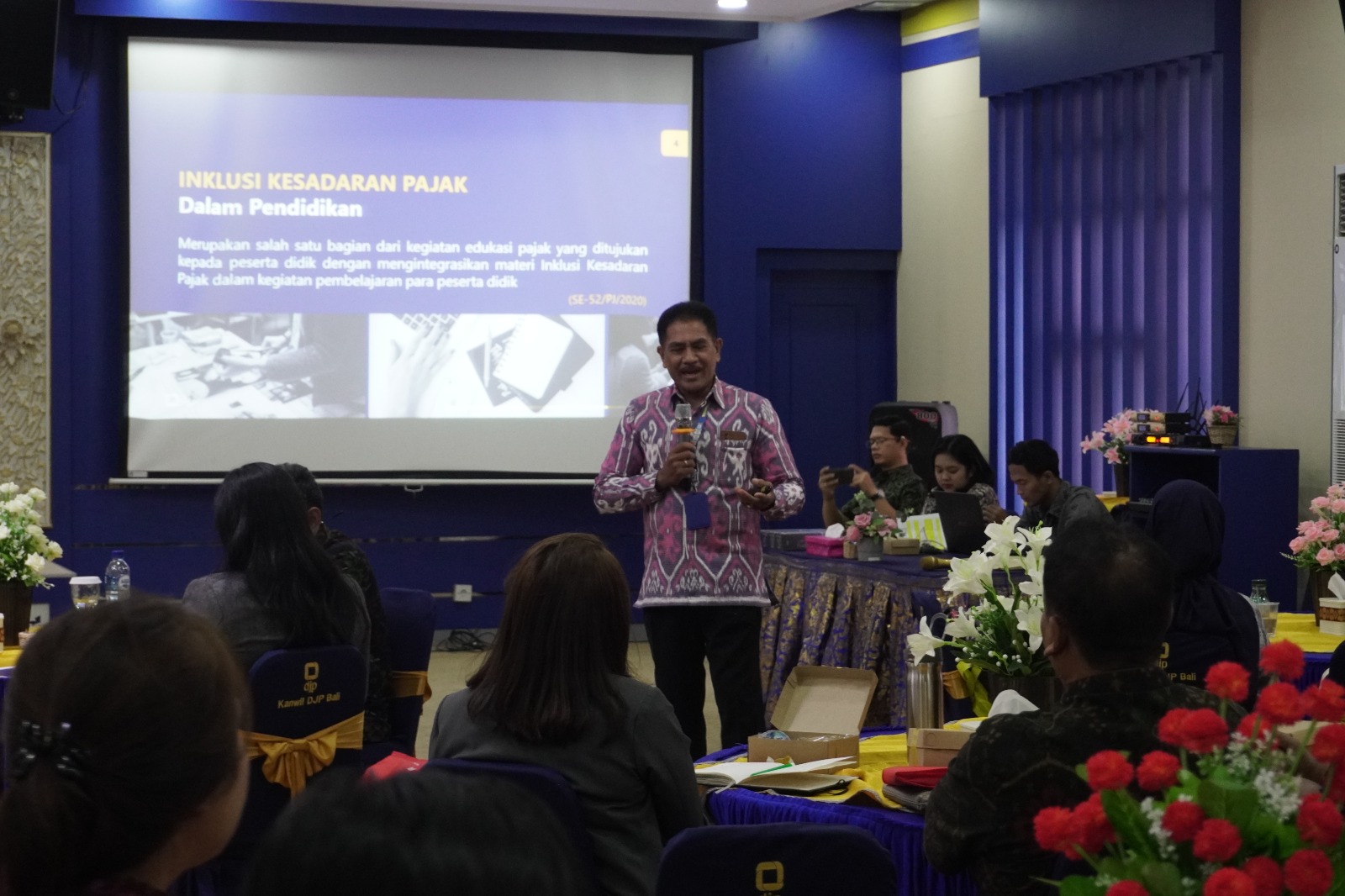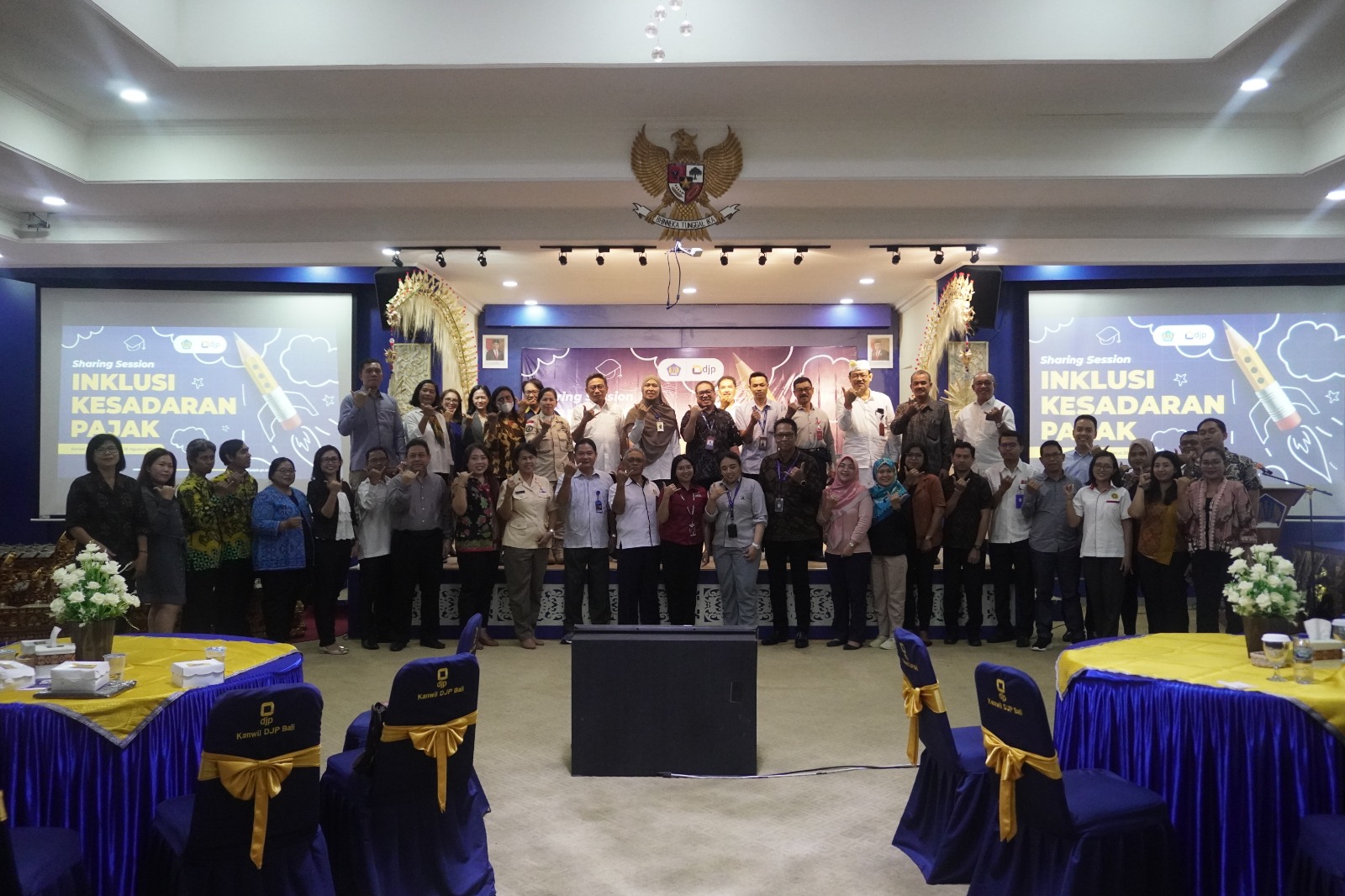 Sharing Session Inklusi Kesadaran Pajak yang dilaksakan pada hari pertama diikuti oleh Wakil Rektor/Wakil Pimpinan di Bidang Akademik didampingi Dosen Mata Kuliah Wajib Umum (MKWU) pada 32 Perguruan Tinggi di Provinsi Bali, dan Bimbingan Teknis Inklusi Kesadaran Pajak yang dilaksanakan pada hari kedua diikuti oleh perwakilan Dosen Mitra Inklusi Kesadaran Pajak pada 32 Perguruan Tinggi di Provinsi Bali.