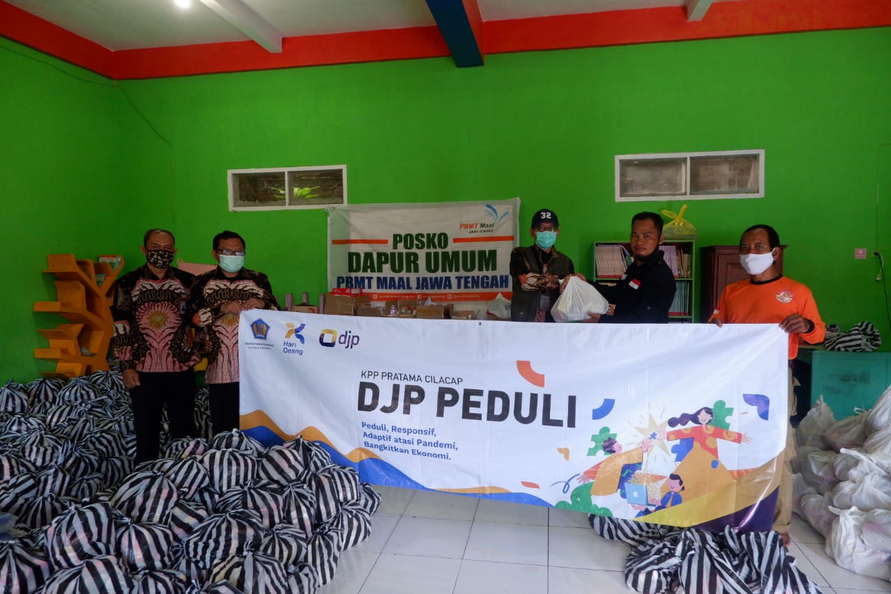 Kantor Pelayanan Pajak (KPP) Pratama Cilacap menyerahkan paket bantuan kepada Tim PBMT Cilacap di Dapur Umum Posko PBMT Cilacap, Desa Mujur Lor, Cilacap (Selasa, 3/11).