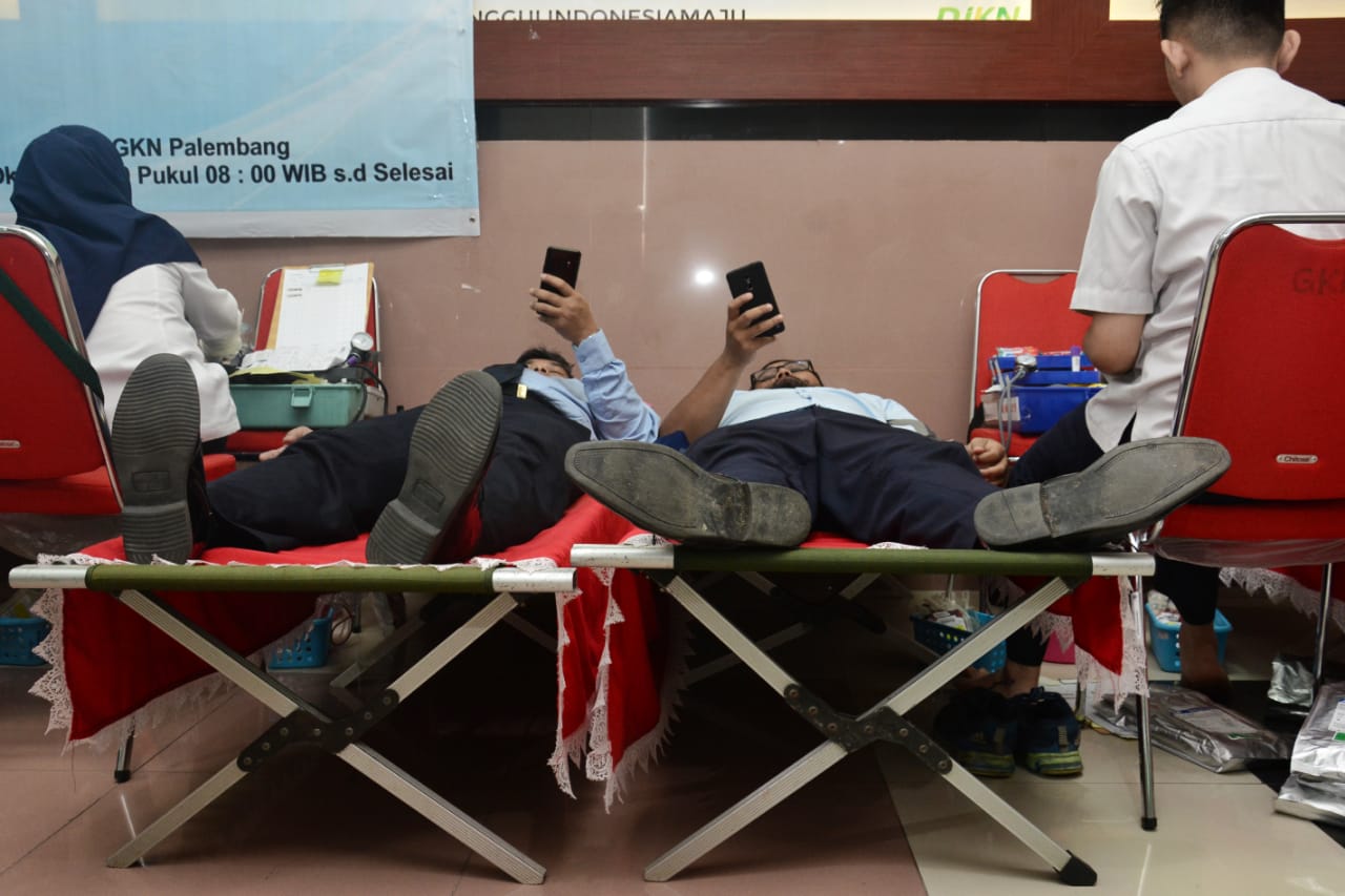 Dalam rangka menyambut Hari Oeang Republik Indonesia ke-73, pegawai Kementerian Keuangan Perwakilan Sumatera Selatan bersama-sama melakukan donor darah bertempat di lobby Gedung Keuangan Negara, Jl. Kapten Rivai, Palembang (Rabu, 23/10).