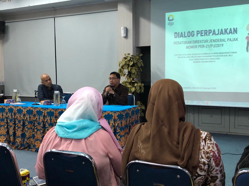 Dialog perpajakan ini ditujukan untuk menginformasikan kepada PPAT dan notaris di kota Singlawang bahwa penelitian formal validasi PHTB sudah dapat dilakukan secara daring sesuai dengan peraturan Direktur Jenderal Pajak nomor PER-21/PJ/2019 di mana para PPAT dan notaris bisa memperoleh surat keterangan validasi secara langsung pada saat itu juga tanpa harus antre di KPP.