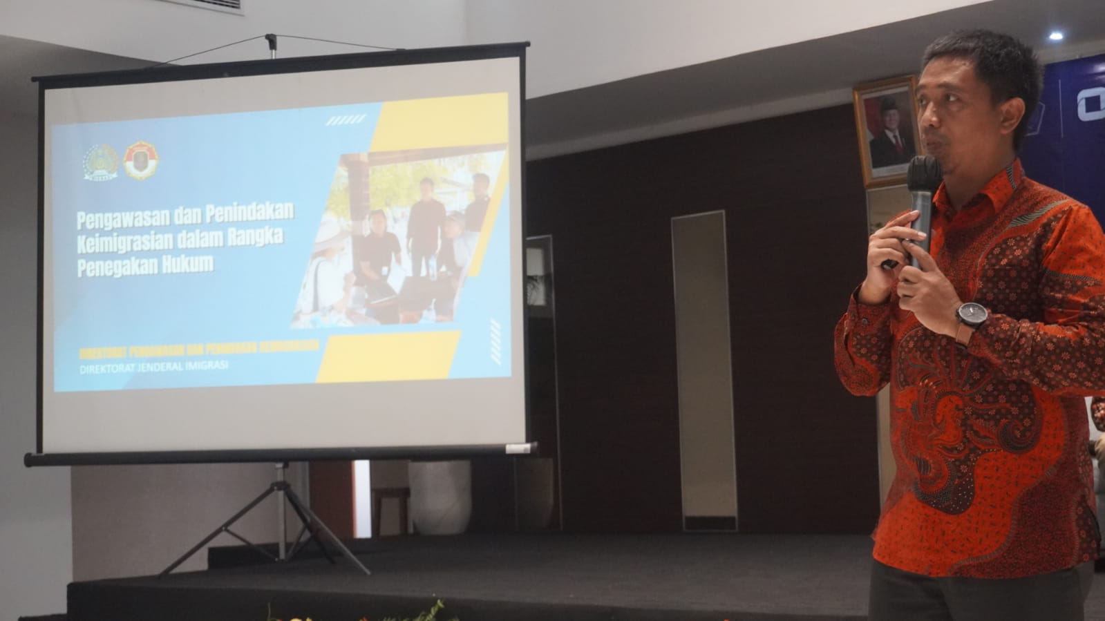 Narasumber sosialisasi adalah Penanggung Jawab Subjek yang Memerlukan Perhatian Tim Kerja Bidang Pengawasan Keimigrasian Direktorat Pengawasan dan Penindakan Keimigrasian Ditjen Imigrasi Erwin Hendrawinata. Erwin menyampaikan bahwa pengawasan secara administratif lapangan pada Ditjen Imigrasi dibagi menjadi pengawasan terhadap Warga Negara Indonesia (WNI) dan terhadap Warga Negara Asing (WNA). Dasar hukum pengawasan ini adalah Undang-Undang Nomor 6 Tahun 2011 tentang Keimigrasian.