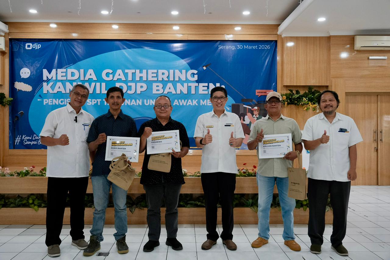 Kantor Wilayah Direktorat Jenderal Pajak (Kanwil DJP) Banten memperkuat sinergi dengan awak media lokal wilayah Banten dengan menggelar kegiatan Media Gathering yang dikemas dengan pendampingan pelaporan surat pemberitahuan (SPT) tahunan pajak penghasilan (PPh) orang pribadi tahun pajak 2025 yang bertempat di Aula Krakatau Kanwil DJP Banten (Senin, 30/3).