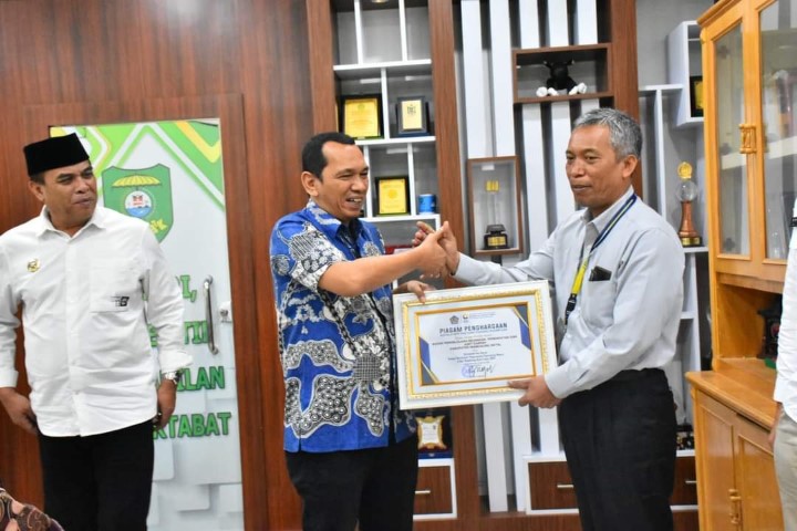 Kepala Kantor Pelayanan Pajak (KPP) Pratama Padang Sidempuan Budiman Napitupulu bersama dengan Kepala Seksi Pengawasan IV Andry Surya Dinata dan tim melakukan kunjungan kerja ke Kantor Bupati Mandailing Natal, Kabupaten Mandailing Natal, Sumatera Utara (Kamis, 2/2).