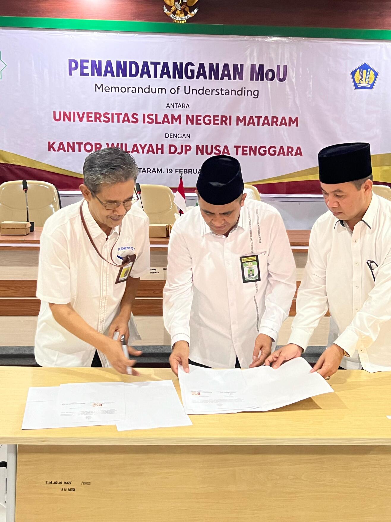 Kantor Wilayah (Kanwil) Direktorat Jenderal Pajak (DJP) Nusa Tenggara melakukan Perjanjian Kerja Sama (PKS) Tax Center dengan Universitas Islam Negeri (UIN) Mataram (Senin, 19/2). Dalam kesempatan tersebut, Rektor UIN Mataram, Prof. Dr. H. Masnun, M. Ag., PKS ini diharapkan semakin meningkatkan edukasi perpajakan UIN Mataram.