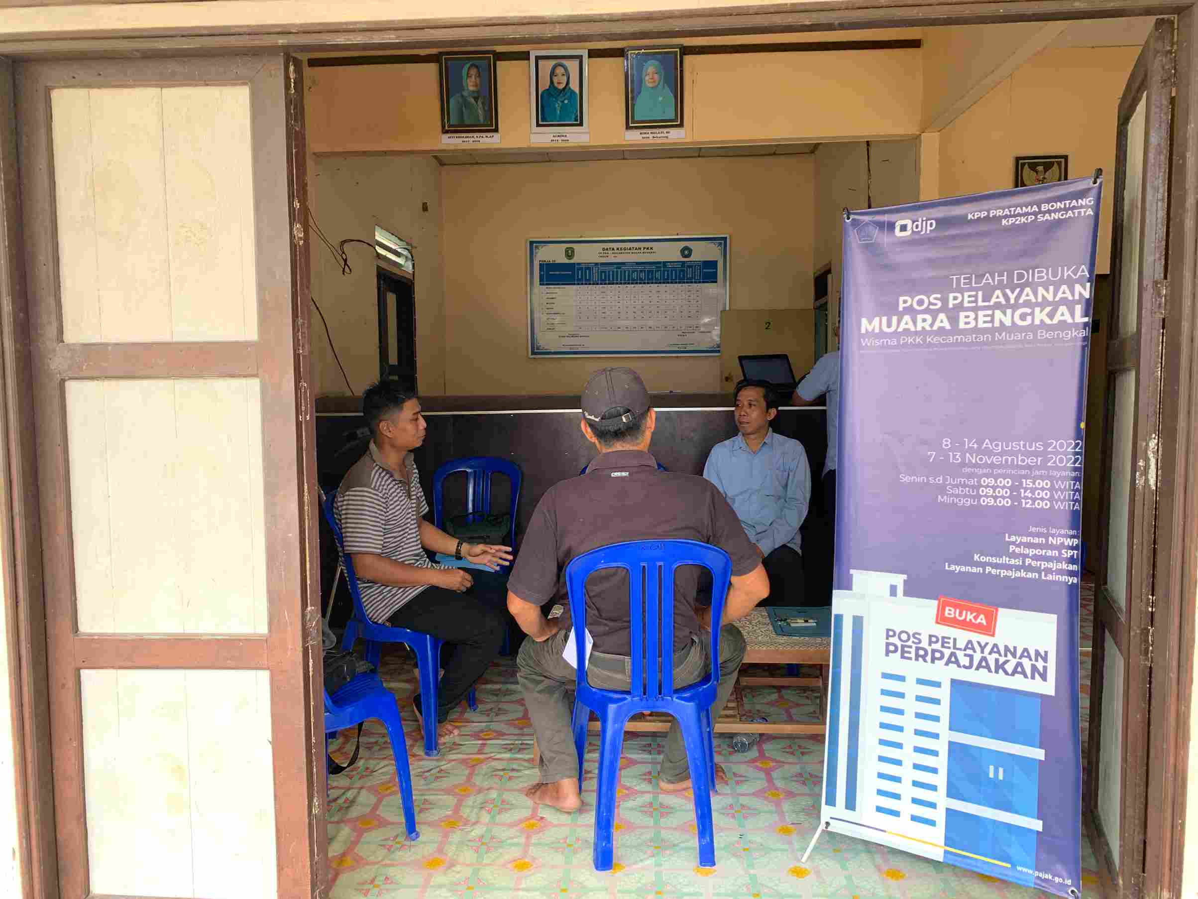 Kantor Pelayanan Pajak (KPP) Pratama Bontang kembali membuka pos pelayanan perpajakan di Kecamatan Muara Bengkal yang berlokasi di Wisma PKK Kecamatan Muara Bengkal, Kabupaten Kutai Timur (Senin, 07/11).