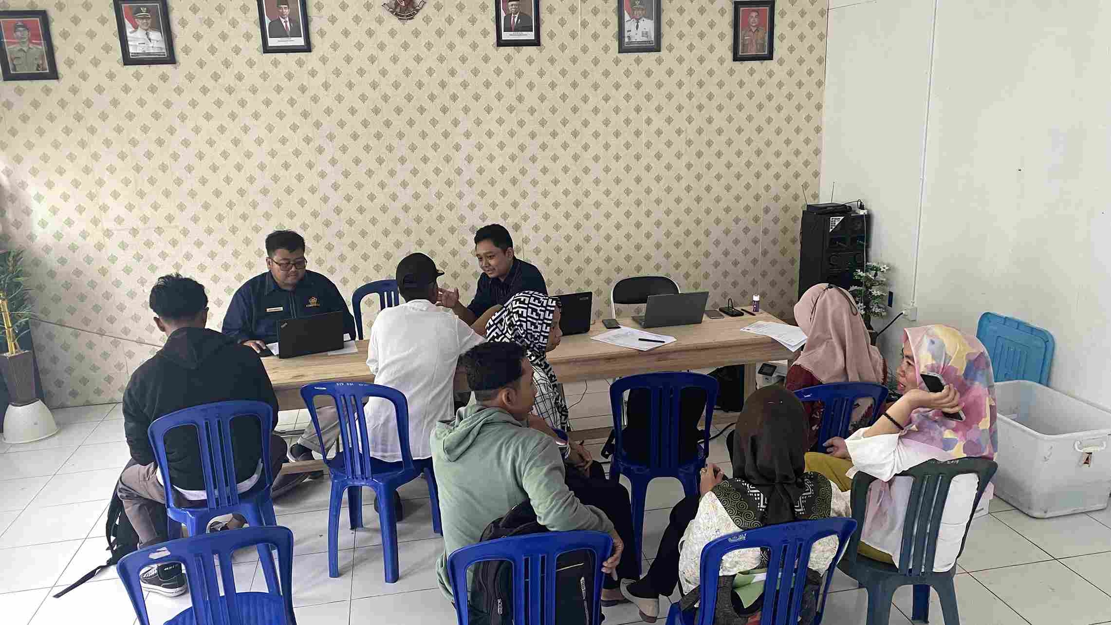 Account Representative KPP Pratama Bontang bertugas memberikan konsultasi tatap muka dengan kepada wajib pajak yang berkunjung. Salah satu wajib pajak yang hadir adalah perangkat Desa Benua Baru Ilir.