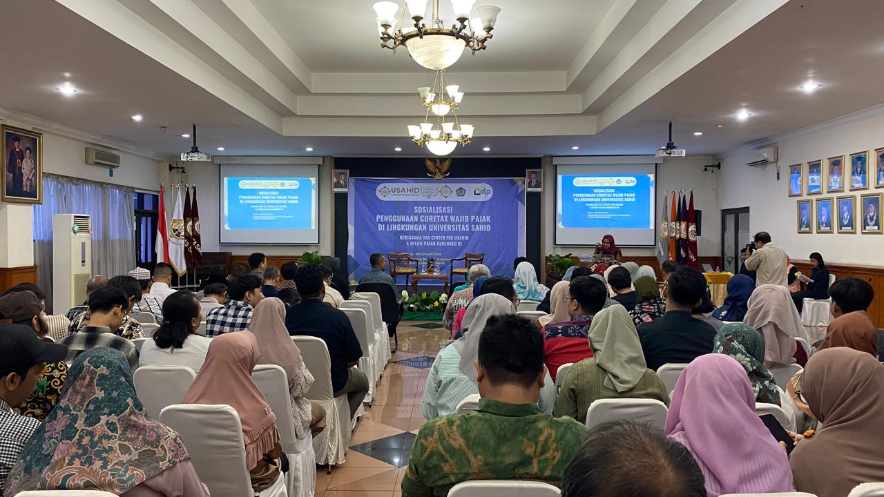 Kegiatan edukasi bertajuk “Sosialisasi Penggunaan Coretax bagi Wajib Pajak di Lingkungan Universitas Sahid Jakarta”. Pada kesempatan ini, acara dibuka langsung oleh Rektor Universitas Sahid, Prof. Dr. Ir. Giyatmi, M.Si., serta dihadiri oleh sejumlah petinggi universitas di antaranya wakil rektor, dekan, dan kepala program studi.
