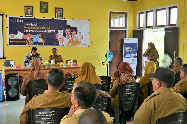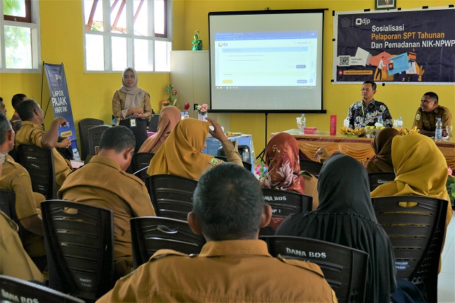 Kantor Pelayanan Penyuluhan dan Konsultasi Perpajakan (KP2KP) Namlea melaksanakan kegiatan sosialisasi pemadanan NIK menjadi NPWP dan pelaporan SPT Tahunan PPh Orang Pribadi kepada para guru TK, SD, SMP dan yang setingkat di Kecamatan Waplau, Kabupaten Buru, Maluku (Selasa, 21/2). Kegiatan yang bertempat di SMP Negeri 12 Buru ini dihadiri oleh sekitar 40 peserta yang merupakan perwakilan dari masing-masing sekolah.