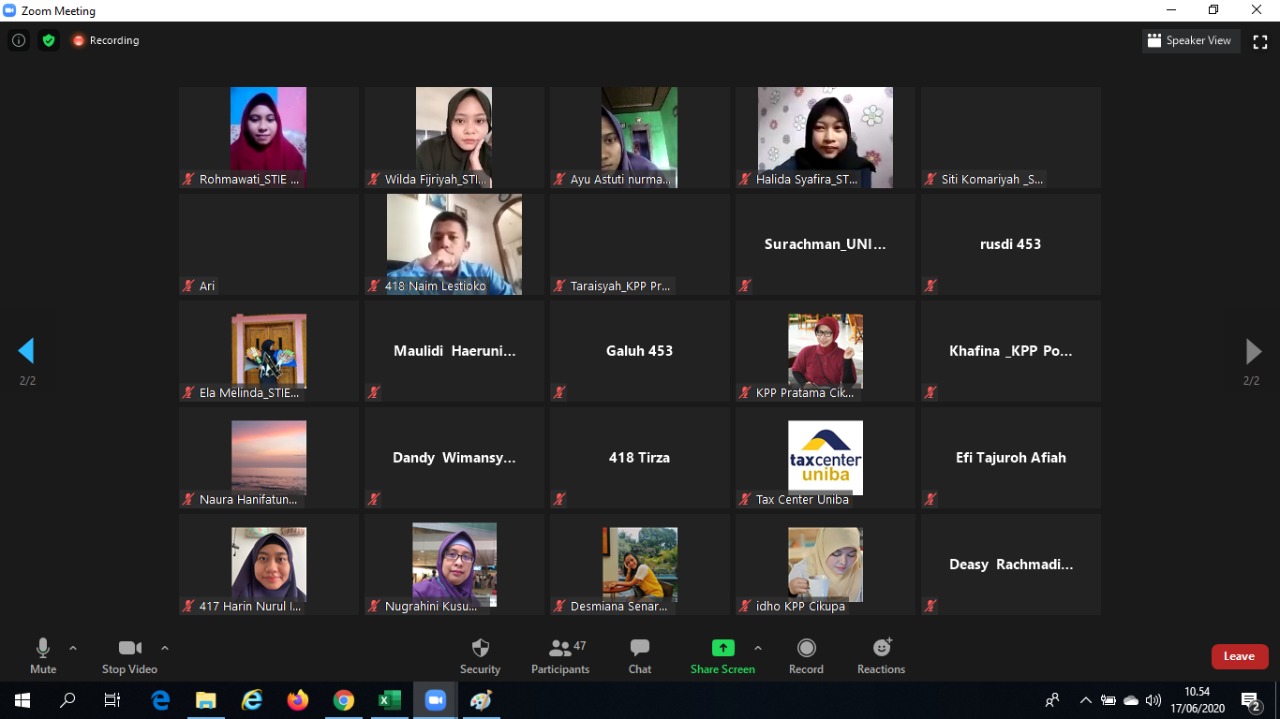 Kurang lebih 50 pengurus dan mahasiswa dari Tax Center yang berada di lingkungan Kantor Wilayah DJP Banten mengikuti bincang santai aturan perpajakan dan silahtuhrahmi idulfitri secara daring melalui media telekonferensi yang diselenggarakan di Kantor Wilayah DJP Banten (Rabu, 17/6)