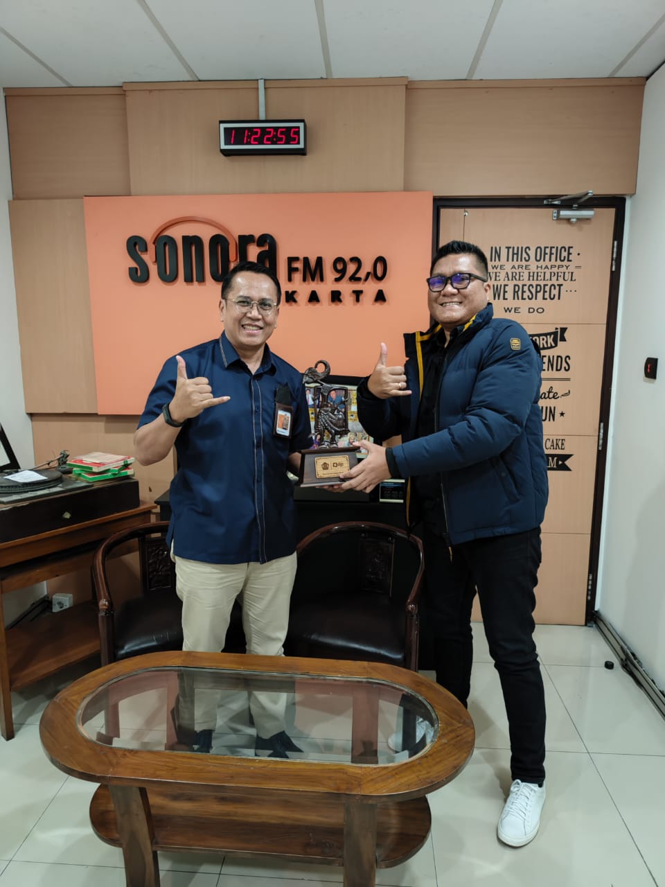 Tim Humas Kantor Wilayah (Kanwil) Direktorat Jenderal Pajak (DJP) Jakarta Barat mengunjungi Studio Radio Sonora di Gedung Kompas Gramedia Lantai 5, Taman Sari, Jakarta Barat (Kamis, 4/5).