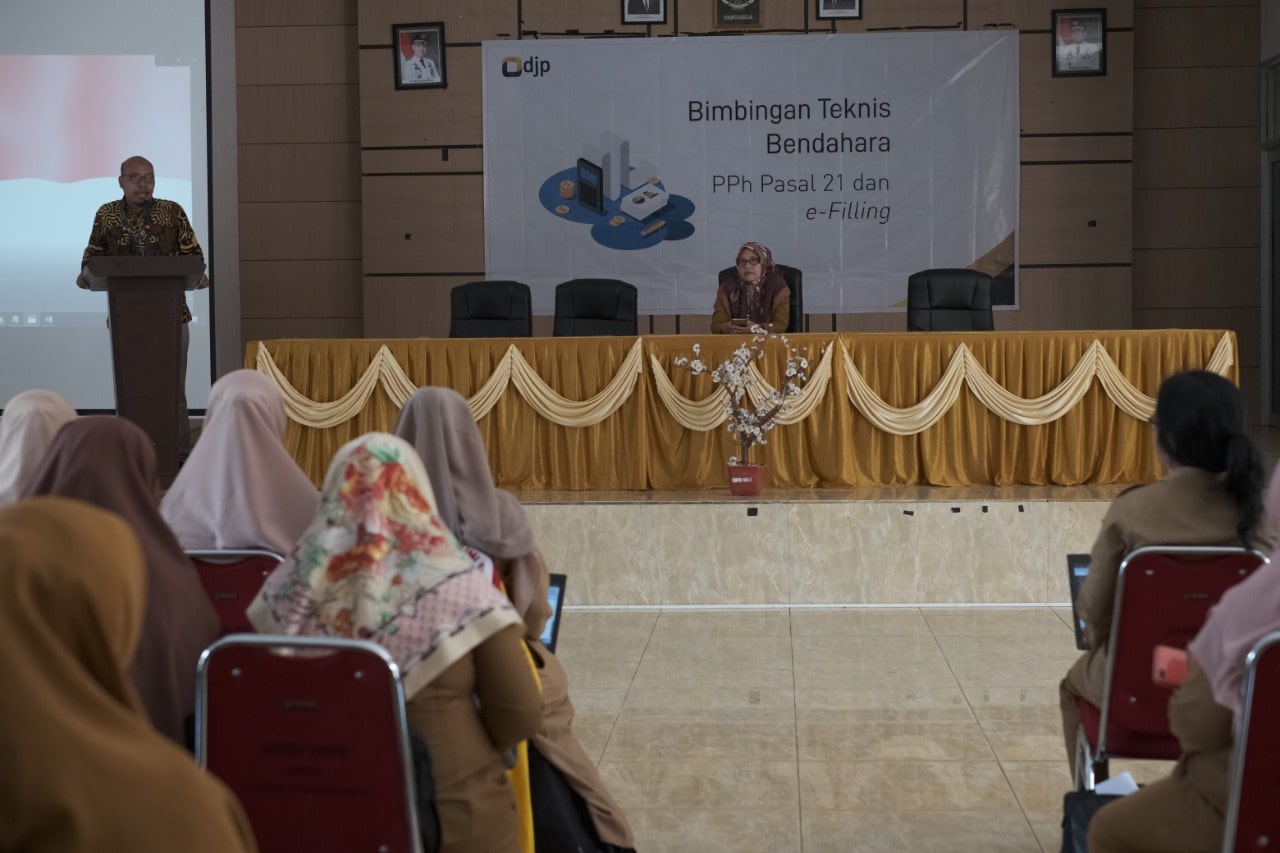 Kantor Pelayanan, Penyuluhan, dan Konsultasi Perpajakan (KP2KP) Malili mengadakan Bimbingan Teknis (Bimtek) pembuatan bukti potong 1721 A2 dan pelaporan SPT Tahunan secara e-Filing pada 190 Bendahara Taman Kanak-kanak, Sekolah Dasar, dan Sekolah Menengah Pertama se-Kabupaten Luwu Timur (Selasa, 11/2). Kegiatan ini berlangsung di ruang Aula Dinas Pendidikan Kabupaten Luwu Timur.