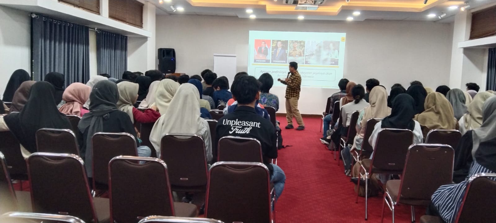 Penyuluh Pajak Kanwil DJP DIY, Darmini Setyo Pinurbo dan Firstiyana Amin Ningo, menyampaikan materi perpajakan. Mereka membahas berbagai isu terkait perpajakan, termasuk peran dan manfaat pajak dalam pembangunan negara, jenis-jenis pajak, serta pentingnya kepatuhan pajak bagi pertumbuhan ekonomi yang berkelanjutan.