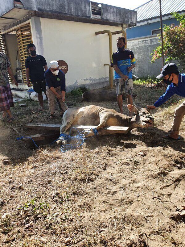 Pandemi Covid-19 menunjukan tren peningkatan kasus, sehingga perayaan Hari Raya Idul Adha tahun ini masih seperti tahun lalu. Oleh karenanya, segala kegiatan mulai dari penyembelihan, pemotongan, dan pembagian daging kurban dilaksanakan dengan menerapkan protokol kesehatan.