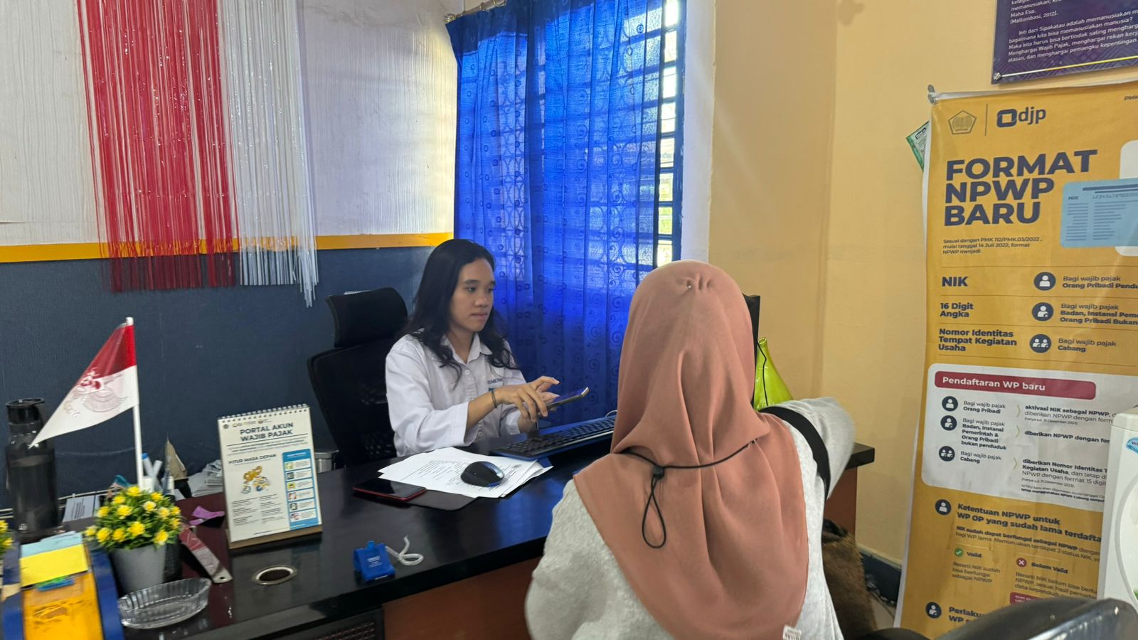 Kantor Pelayanan, Penyuluhan, dan Konsultasi Perpajakan (KP2KP) Enrekang memberikan layanan edukasi kewajiban perpajakan UMKM kepada wajib pajak baru di Tempat Pelayanan Terpadu (TPT) KP2KP Enrekang, Jalan Buttu Juppandang, Kelurahan Juppandang, Kecamatan Enrekang (Senin, 12/8).