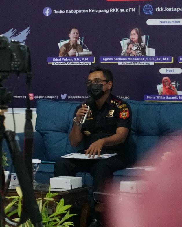 Kepala KPPN Ketapang, KPP Pratama Ketapang, KPPBC Ketapang dan perwakilan BPS Kabupaten Ketapang menjadi narasumber dalam siaran langsung melalui facebook Radio Kabupaten Ketapang RKK 95.2 FM di Aula KPPN Ketapang (Senin, 28/7).