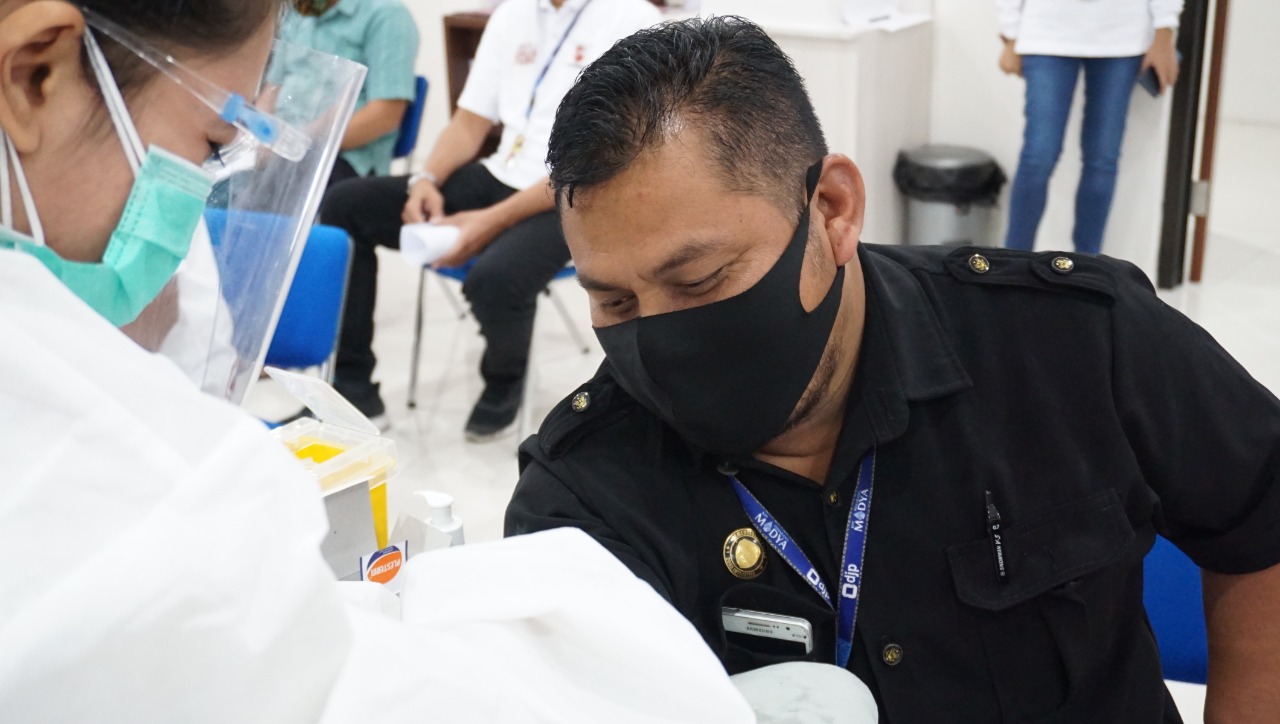 Sebanyak 132 pegawai KPP Madya Semarang mengikuti tes cepat yang bertempat di aula kantor. Bekerja sama dengan Laboratorium Parahita Semarang, kegiatan tes cepat tersebut diikuti oleh seluruh pegawai organik maupun tenaga pendukung satuan pengamanan dan kebersihan di Semarang (10/12)