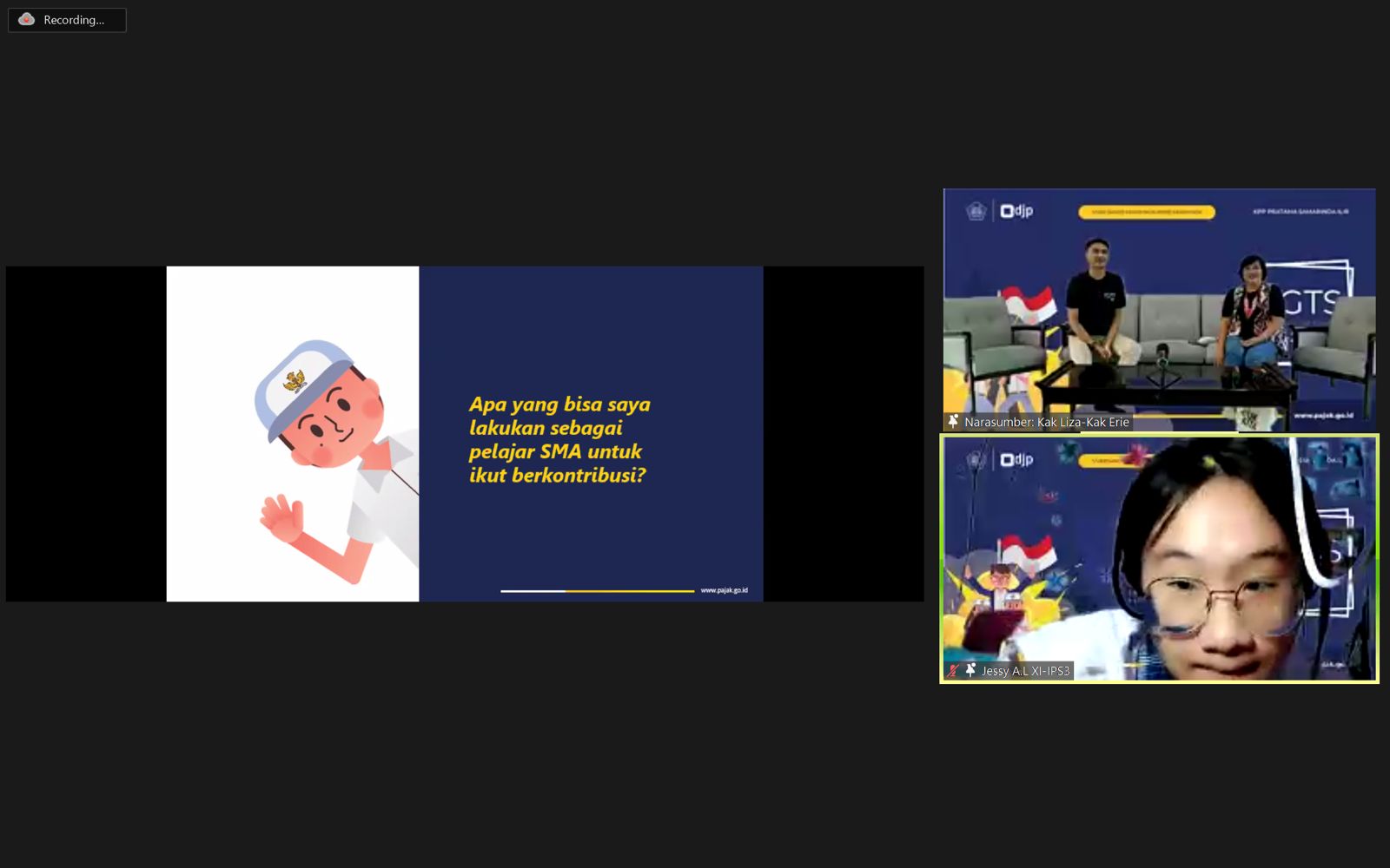 Bertepatan dengan Hari Sumpah Pemuda, Kantor Pelayanan Pajak (KPP) Pratama Samarinda Ilir melangsungkan Tax Goes To School (TGTS) bersama SMA Katolik Santo Fransiskus Assisi Samarinda melalui aplikasi Zoom Meetings di Kota Samarinda (Kamis, 28/10). Mengusung tema “Generasi Muda Sadar Pajak Wujud Bela Negara”, TGTS ini bertujuan agar para siswa sebagai generasi milenial memahami pentingnya pajak serta mengetahui hak dan kewajiban perpajakannya di masa depan.