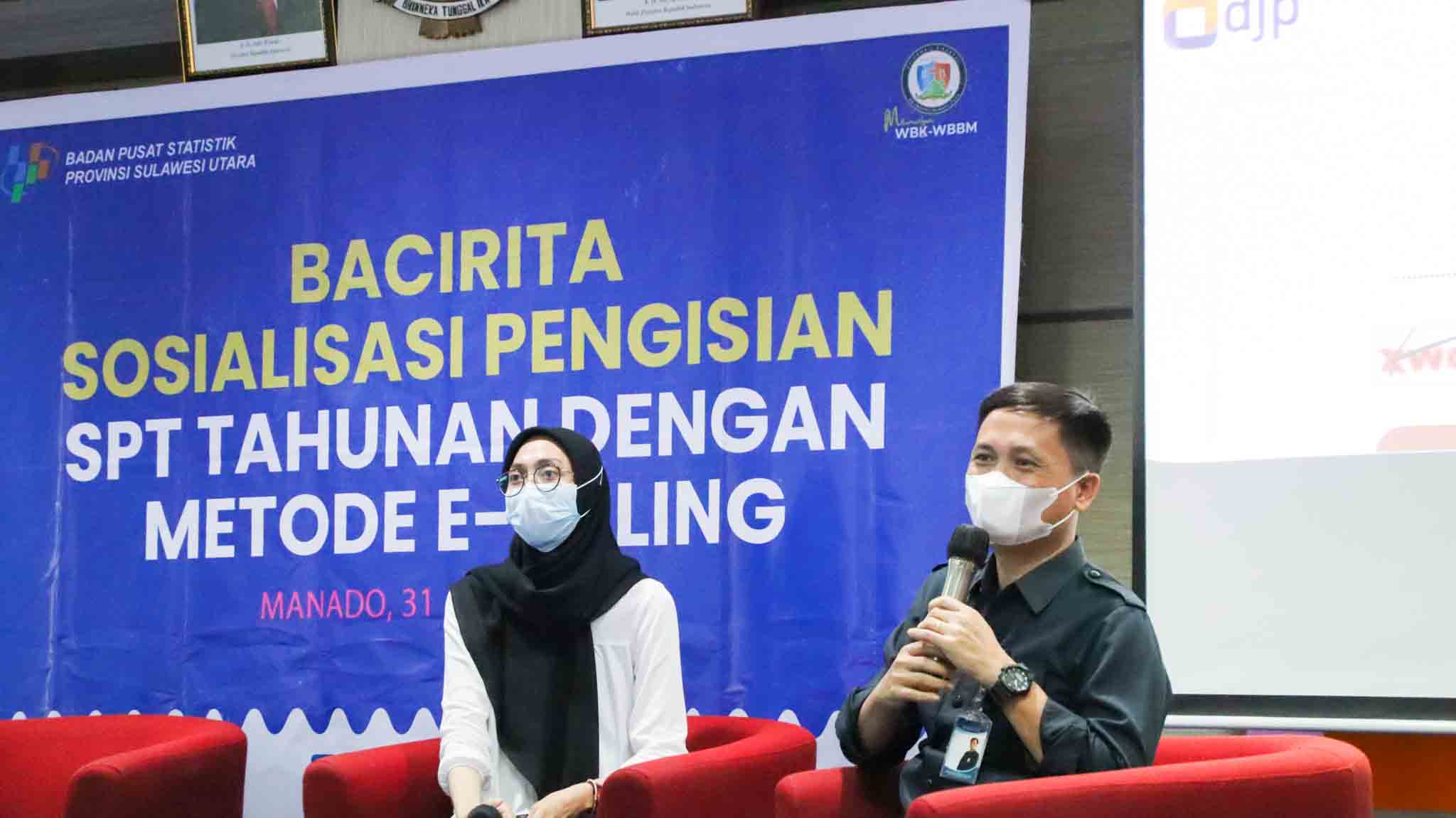 Kantor Pelayanan Pajak (KPP) Pratama Manado menagadakan kegiatan sosialisasi pengisian Surat Pemberitahuan (SPT) Tahunan Pajak Penghasilan (PPh) Wajib Pajak Orang Pribadi (WPOP) bagi Aparatur Sipil Negara (ASN) Badan Pusat Statistik Provinsi Sulawesi Utara (BPS Sulut) bertempat di Aula BPS Sulut, Kota Manado (Seni, 31/1).
