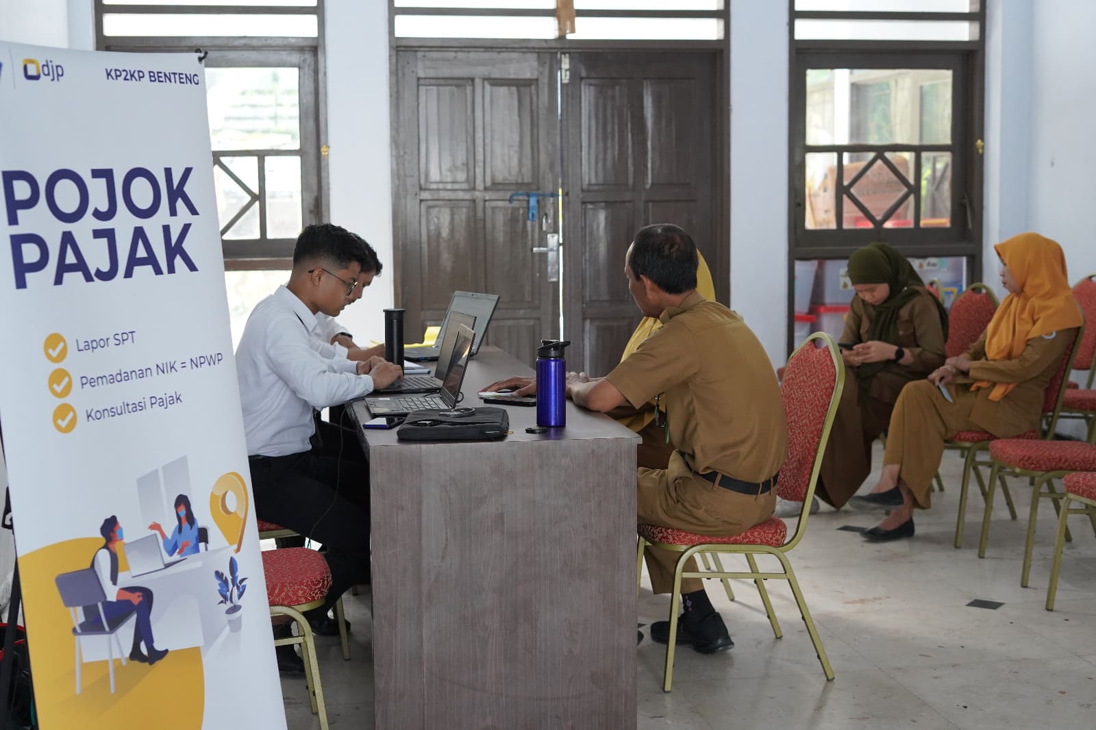 Kantor Pelayanan Penyuluhan dan Konsultasi Perpajakan (KP2KP) Benteng melakukan asistensi Pemadanan Nomor Induk Kependudukan (NIK) menjadi Nomor Pokok Wajib Pajak (NPWP) dan asistensi Pelaporan Surat Pemberitahuan (SPT) Tahunan Pajak Penghasilan Orang Pribadi kepada para Wajib Pajak Aparatur Sipil Negara (ASN) melalui pojok pajak di lingkungan Kantor Bupati Kepulauan Selayar (Senin, 13/3).