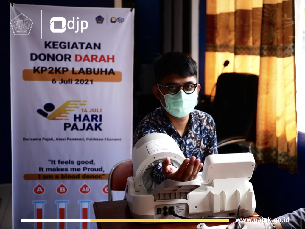 "Kegiatan donor darah merupakan kegiatan sosial yang dilakukan oleh KP2KP Labuha sebagai rangkaian peringatan Hari Pajak tahun 2021, sekaligus membantu pemerintah daerah dalam menjaga persediaan darah di tengah pandemi virus Covid-19," kata Bandi.