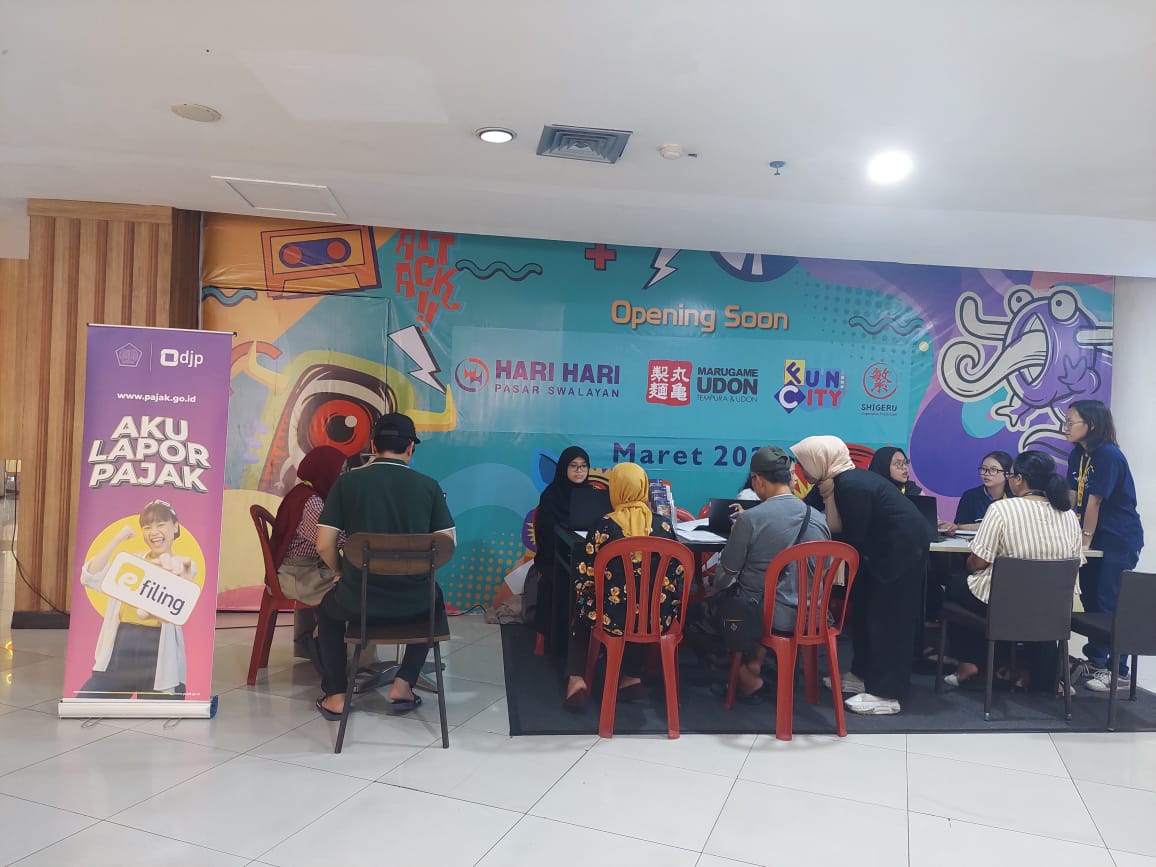Kantor Pelayanan Pajak (KPP) Pratama Jakarta Pancoran bersama dengan KPP Pratama Jakarta Setiabudi Tiga dan KPP Pratama Jakarta Mampang Prapatan membuka layanan pojok pajak di Mal Plaza Kalibata, Jalan Raya Kalibata, Kota Administrasi Jakarta Selatan (Minggu, 31/3).