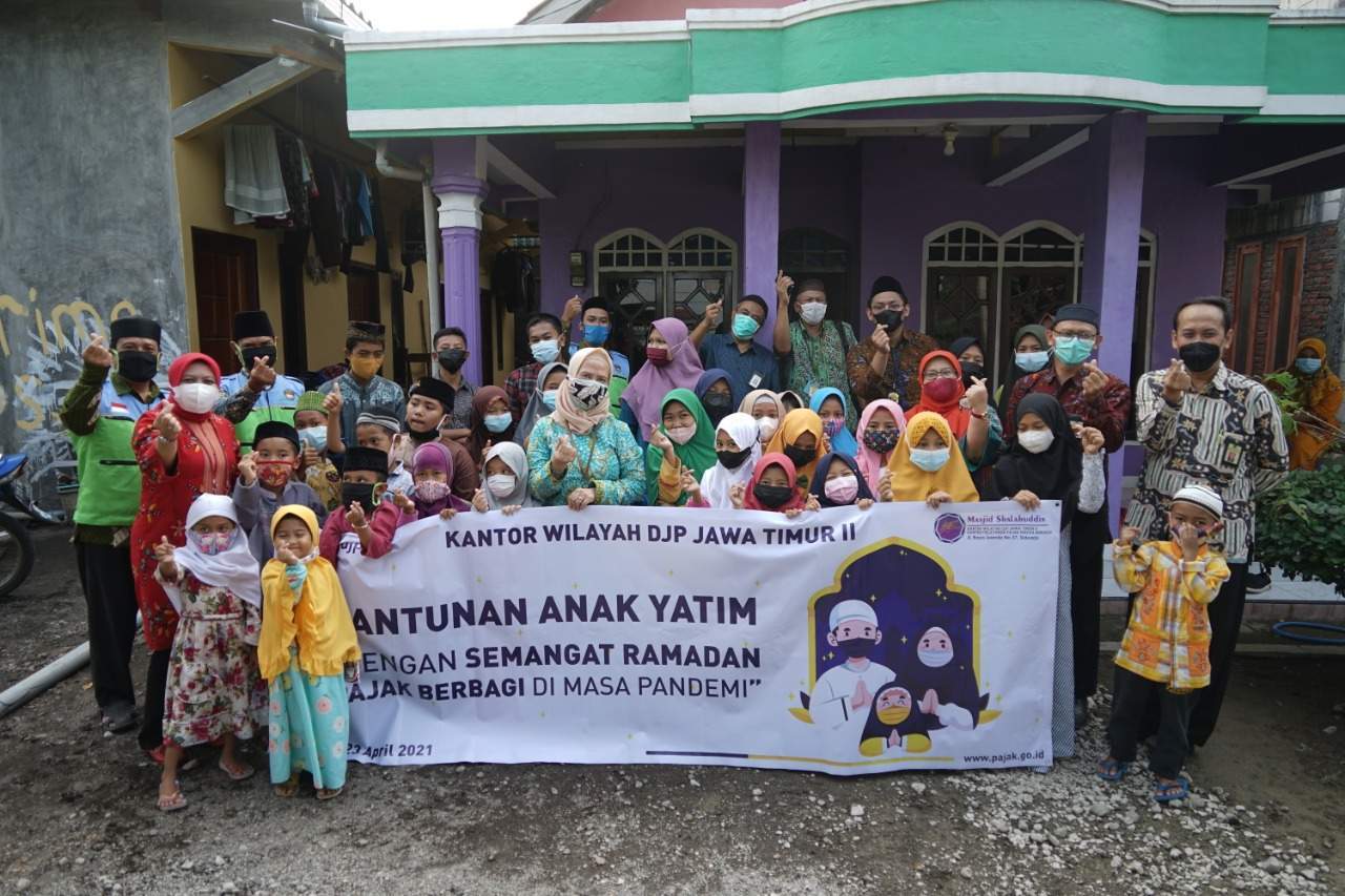 Sebagai bentuk kepedulian sekaligus dalam rangka kegiatan Simpatik Pajak, Kantor Wilayah DJP Jawa Timur II menyalurkan santunan kepada 30 anak yatim dan duafa yang menjadi binaan dari Yayasan Darussaadah Al Hayat Sidoarjo. Kegiatan yang juga berkolaborasi dengan Takmir Masjid Salahuddin dan Paguyuban Karyawan/Karyawati (Pakarti) Kanwil DJP Jatim II ini dilaksanakan di kantor Yayasan Darussaadah Al Hayat Sidoarjo, Jl. Demangsari RT.05 RW.01 Desa Keboan Anom, Gedangan, Sidoarjo (Jumat, 23/4).