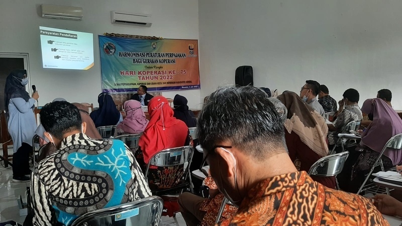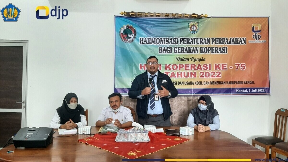Kantor Pelayanan, Penyuluhan, dan Konsultasi Perpajakan (KP2KP) Kendal menggelar sosialisasi dengan tema Harmonisasi Perpajakan Bagi Gerakan Koperasi (Rabu, 6/7). Kegiatan ini merupakan kerja sama KP2KP Kendal dengan Dinas Perdagangan, Koperasi, dan Usaha Kecil Menengah yang diselenggarakan dalam rangka meramaikan peringatan Hari Koperasi ke-75.