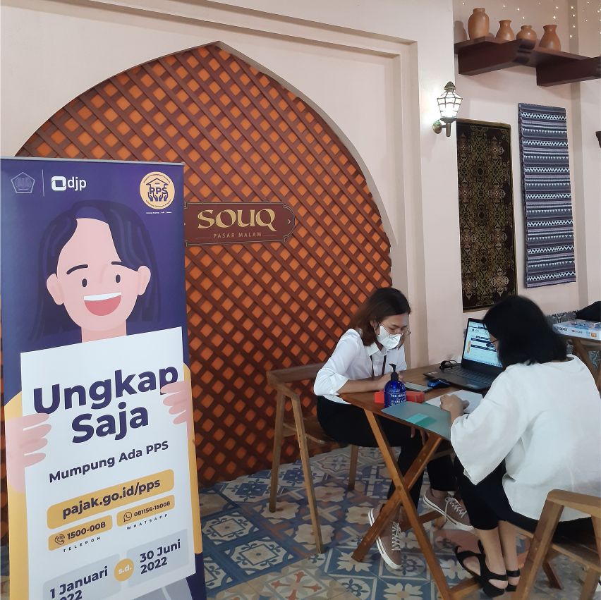Kantor Pelayanan Pajak (KPP) Madya Dua Tangerang bersinergi dengan KPP Pratama Tigaraksa membuka layanan Pojok Pajak khusus Program Pengungkapan Sukarela (PPS) di SOUQ Pasar Malam, Summarecon Mall Serpong, Kabupaten Tangerang (Senin, 13/6). Layanan ini dibuka hingga akhir pelaksanaan PPS yakni Kamis, 30 Juni 2022.