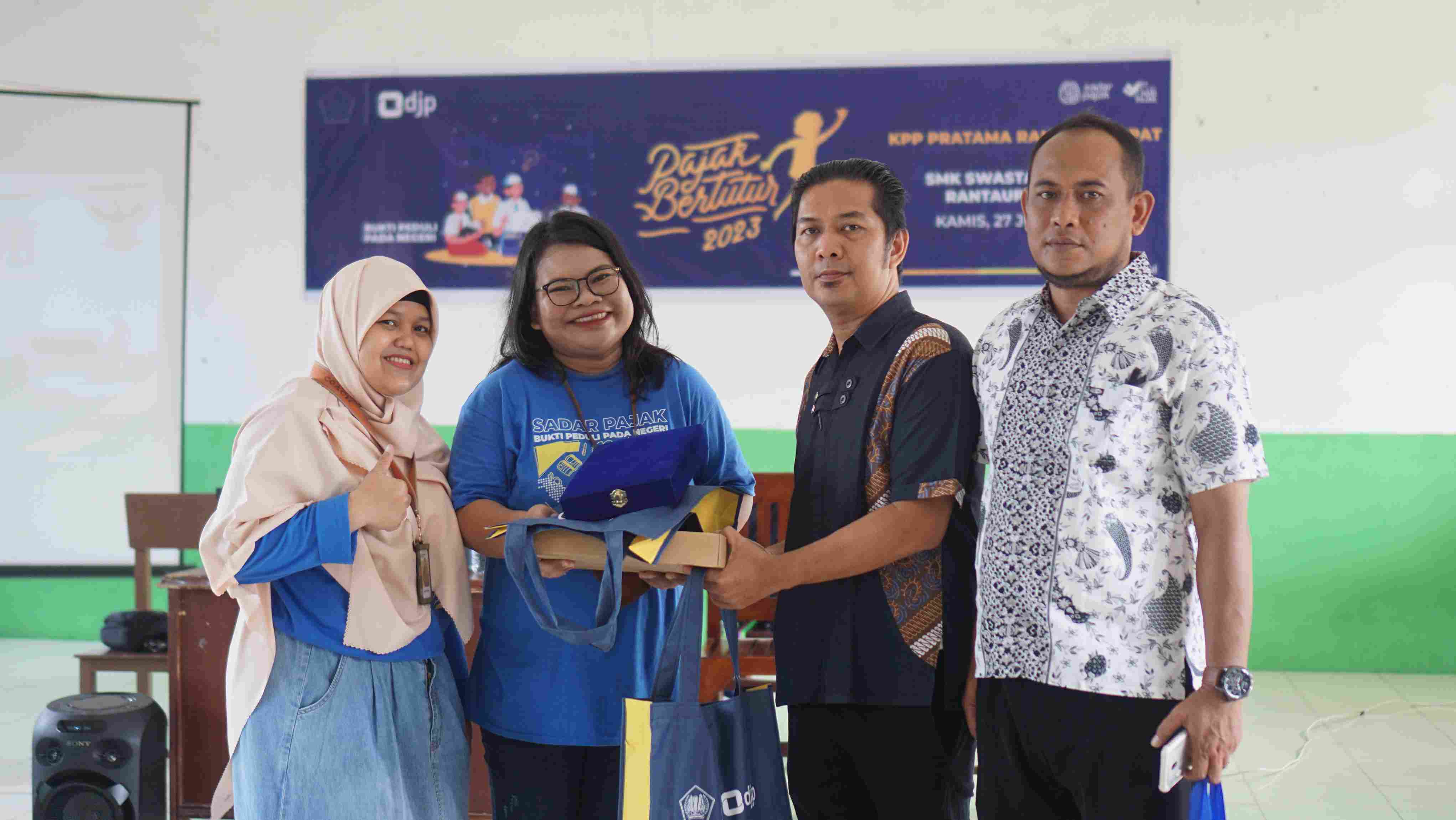 Tim Penyuluh Pajak Kantor Pelayanan Pajak (KPP) Pratama Rantau Prapat melaksanakan Pajak Bertutur 2023 bersama siswa-siswi Sekolah Menengah Kejuruan (SMK) Swasta Pemda Rantau Prapat di Kab. Labuhanbatu, Sumatera Utara (Kamis, 27/7).