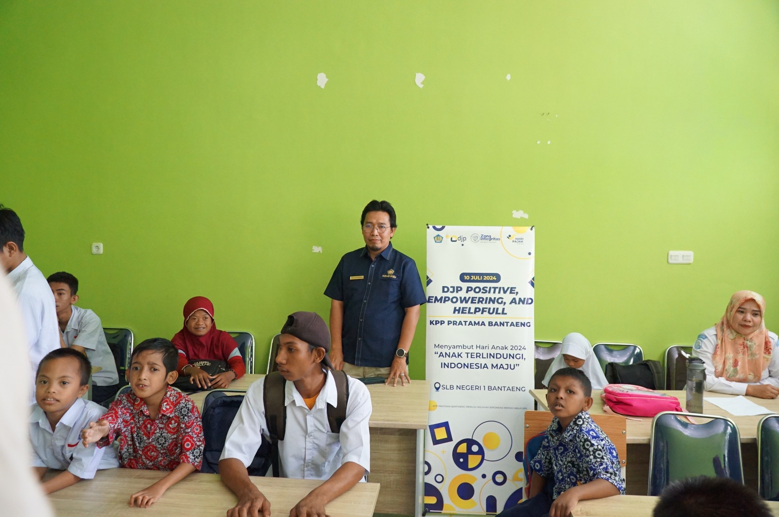 Kantor Pelayanan Pajak (KPP) Pratama Bantaeng mengunjungi Sekolah Luar Biasa (SLB) Negeri 1 Bantaeng yang berlokasi di Jl. Pemuda, Kel. Pallantikang, Kec. Bantaeng, Kab. Bantaeng (Rabu, 10/7). Kunjungan dimaksudkan sebagai bentuk kegiatan berbagi atau “Sharing Day” yang dilaksanakan sebagai salah satu acara untuk meramaikan perayaan Hari Pajak Tahun 2024. Acara tersebut diadakan sebagai bentuk kepedulian KPP Pratama Bantaeng terhadap pendidikan anak-anak berkebutuhan khusus dengan melakukan aksi belajar mengajar kepada para siswa di SLB.