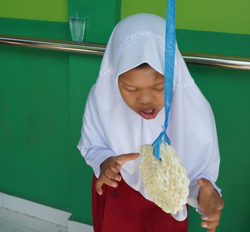 Setelah permainan berakhir, acara dilanjutkan bernyanyi bersama lagu anak-anak bersamaan dengan penyerahan makanan ringan, buku mewarnai, dan bingkisan kepada seluruh siswa SLBN 1 Bantaeng yang mengikuti sampai akhir kegiatan. Wajah penuh keceriaan dan kehangatan terlihat dari para siswa saat menerima bingkisan. Ketidakrelaan beberapa siswa atas berakhirnya acara menggambarkan bahwa kegiatan seperti ini sangat berarti bagi mereka.