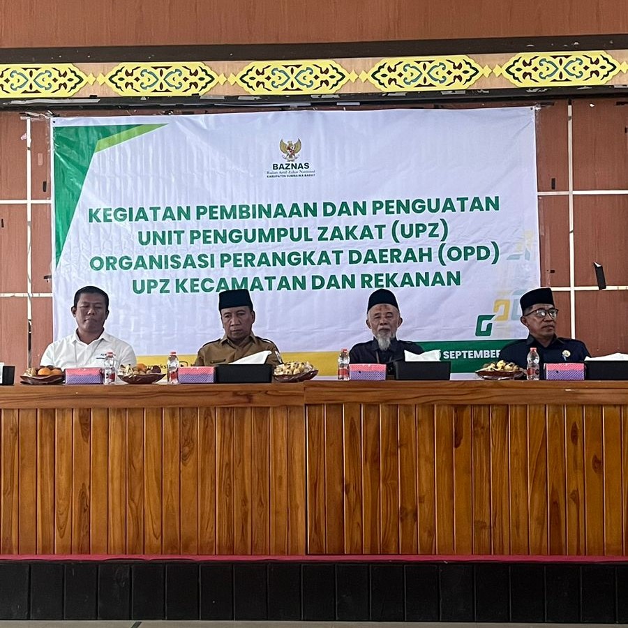 Badan Amil Zakat Nasional (BAZNAS) Kabupaten Sumbawa Barat menggelar acara pembinaan dan penguatan Unit Pengumpul Zakat (UPZ) yang melibatkan organisasi perangkat daerah (OPD), UPZ kecamatan, dan rekanan di Hanipati Resto, Taliwang. Kegiatan ini juga menghadirkan Kantor Pelayanan Penyuluhan dan Konsultasi Perpajakan (KP2KP) Taliwang sebagai salah satu narasumber di Sumbawa Barat (Senin, 9/9)