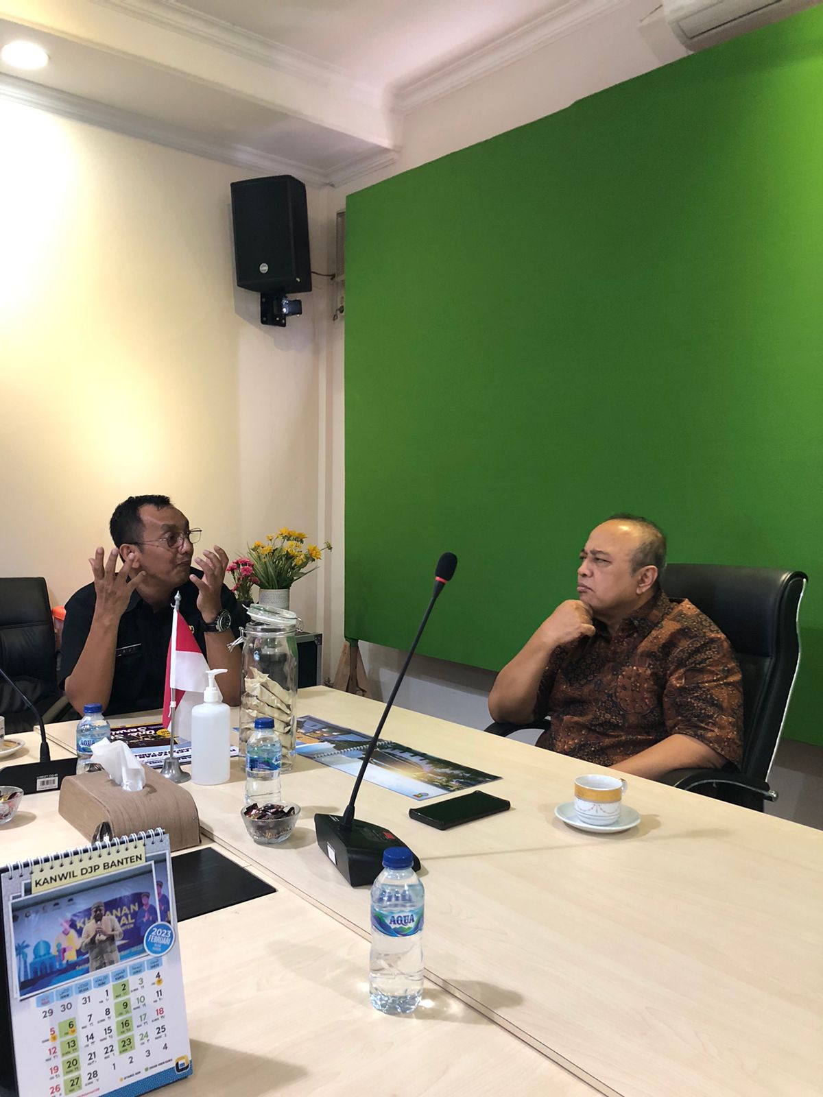 Kepala Kantor Wilayah Direktorat Jenderal Pajak (Kanwil DJP) Banten Yoyok Satiotomo menerima kunjungan kerja dari Dinas Penanaman Modal dan Pelayanan Terpadu Satu Pintu (DPMPTSP) Kabupaten Tangerang berdiskusi tentang langkah awal pendirian Mal Pelayanan Publik (MPP) Kabupaten Tangerang di Ruang Rapat Kepala Kanwil DJP Banten, Kota Serang (Jumat, 24/2).