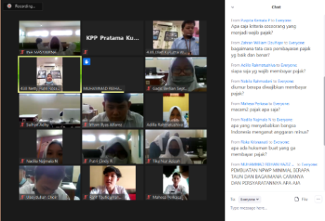 Pemateri Pajak Bertutur kali ini adalah Mochamad Ilham Panca Prastama, Account Representative KPP Pratama Kuningan. Kegiatan Tahun Ajaran Baru sudah dimulai dengan pembelajaran siswa masih secara daring sehingga siswa-siswi mengikuti Pajak Bertutur dirumah masing-masing dengan menggunakan seragam sekolah. Acara dibuka oleh Kepala Kantor KPP Pratama Kuningan Eko Hadiyanto pukul 09.10 memberi semangat kepada para siswa untuk tetap semangat walau belajar dari rumah dimasa Pandemi Covid-19.