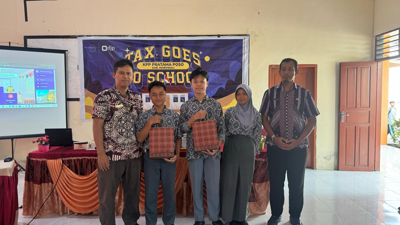 Penyuluh Kantor Pelayanan Pajak (KPP) Pratama Poso menyelenggarakan acara Tax Goes to School (TGTS) di Sekolah Menengah Atas (SMA) Negeri 1 Bungku, Morowali, Sulawesi Tengah (Kamis, 6/6). Acara ini dihadiri oleh empat puluh siswa-siswi sekolah tersebut. Adapun fokus utama acara ini adalah untuk meningkatkan kesadaran pajak kepada siswa-siswi yang merupakan generasi emas bangsa sehingga bisa menjadi warga negara yang taat pajak di kemudian hari.