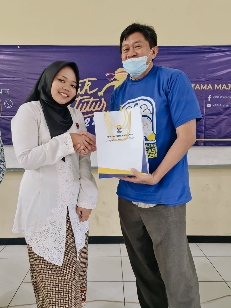 Materi disampaikan oleh Tim Penyuluh Pajak KPP Pratama Majalaya secara interaktif sehingga para siswa dapat berpartisipasi langsung dalam games maupun sesi tanya jawab. Para peserta yang mendapatkan skor tertinggi dalam post test games maupun yang aktif berinteraksi sejak awal kegiatan mendapatkan bingkisan yang diserahkan oleh Kepala KPP Pratama Majalaya Akhmad Tizani.