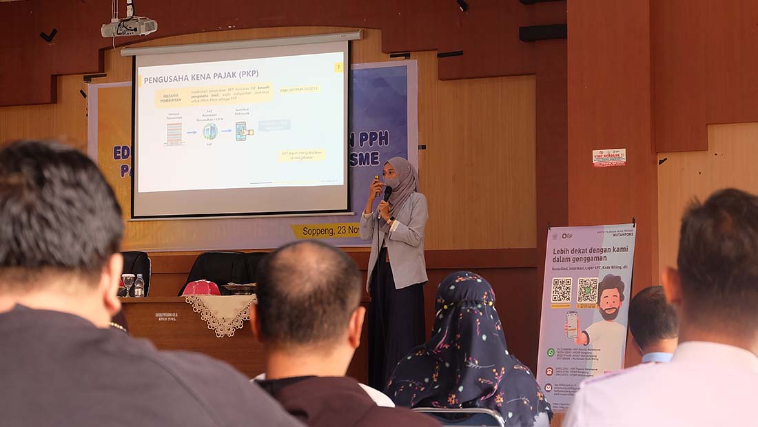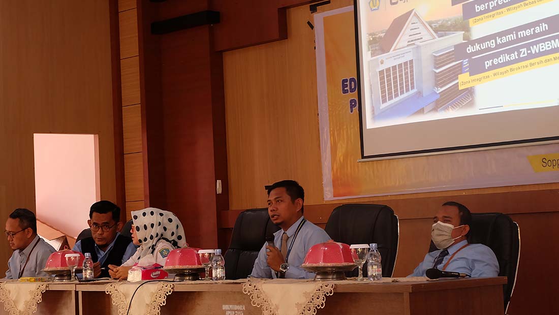 Kantor Pelayanan, Penyuluhan, dan Konsultasi Perpajakan (KP2KP) Watansoppeng bersama Kantor Pelayanan Pajak (KPP) Pratama Watampone menggelar kegiatan sosialisasi Peraturan Menteri Keuangan (PMK) Nomor 59/PMK.03/2022 dan Surat Pemberitahuan (SPT) Masa unifikasi instansi pemerintah di Aula Kantor Dinas Pendidikan Kabupaten Soppeng (Rabu, 23/11).