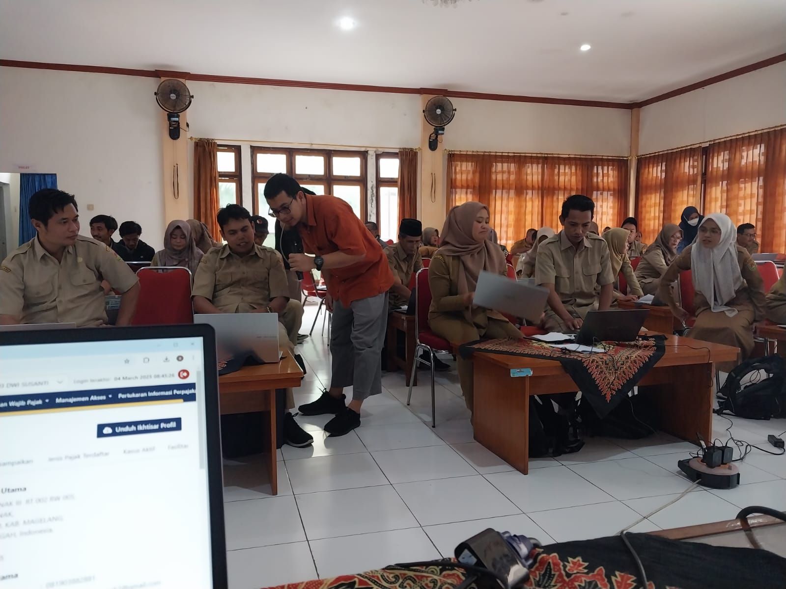 Kantor Pelayanan, Penyuluhan, dan Konsultasi Perpajakan (KP2KP) Muntilan menyelenggarakan kegiatan Kelas Pajak Edukasi Coretax DJP kepada bendaharawan desa se-Kecamatan Dukun Kabupaten Magelang secara luring bertempat di Aula Kecamatan Dukun, Kabupaten Magelang (Rabu, 4/3).
