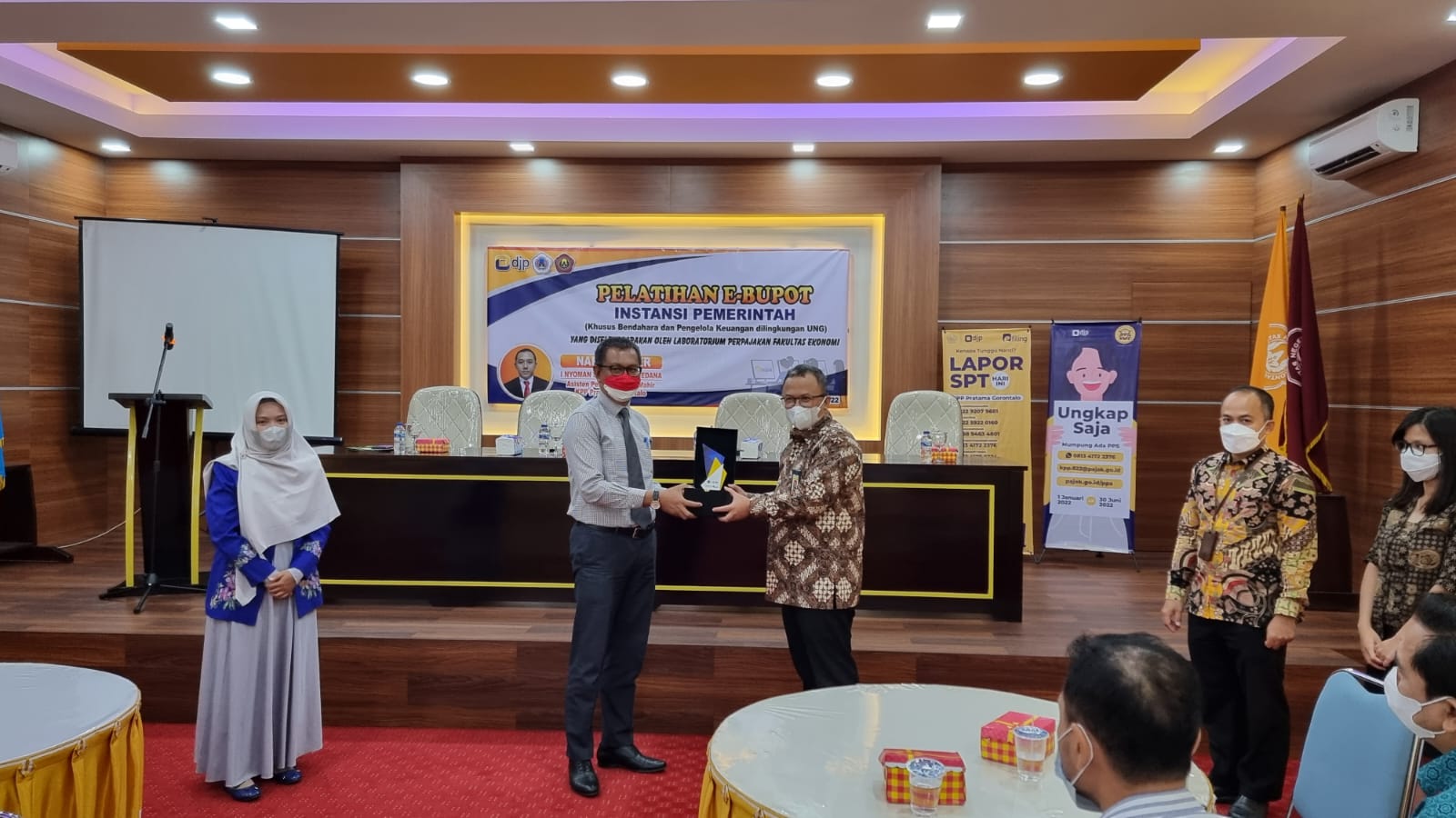 Kantor Pelayanan Pajak (KPP) Pratama Gorontalo menghadiri undangan dari Universitas Negeri Gorontalo (UNG) sebagai narasumber dalam kegiatan Pelatihan Aplikasi Elektronik Bukti Potong (e-Bupot) Instansi Pemerintah bagi bendahara dan pengelola keuangan di lingkungan UNG bertempat di Balai Pertemuan UNG, Kota Gorontalo (Selasa, 8/2).