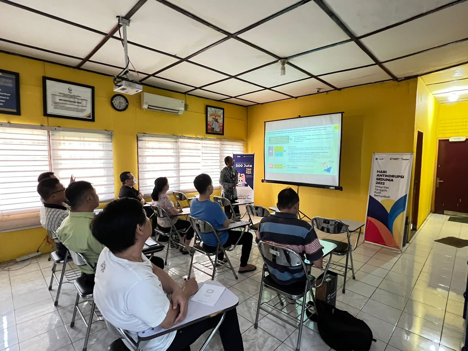 Kantor Pelayanan, Penyuluhan, dan Konsultasi Perpajakan (KP2KP) Muara Enim menggelar kegiatan sosialisasi perpajakan mengenai Peraturan Menteri Keuangan (PMK) Nomor 48 Tahun 2023 tentang Aspek Perpajakan Pedagang Emas di Ruang Konsultasi KP2KP Muara Enim, Muara Enim, Sumatera Selatan (Selasa, 27/6). Sosialisasi ini dihadiri oleh 24 pedagang emas di wilayah Kabupaten Muara Enim dan diisi dengan sesi tanya jawab dan diskusi.