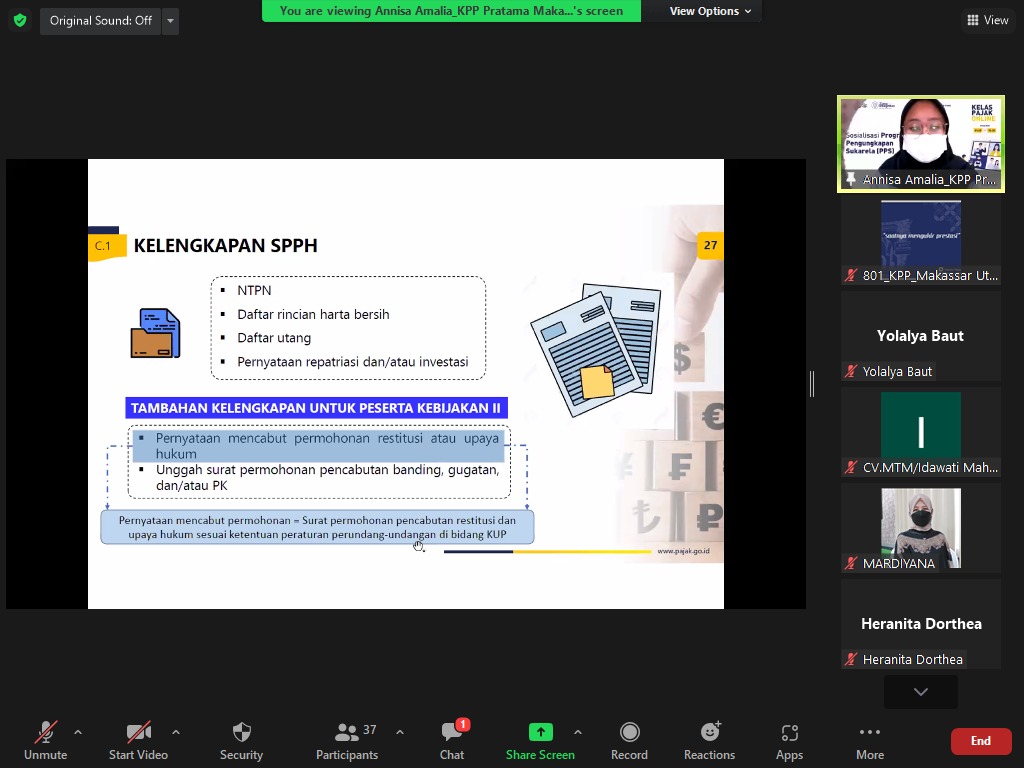Kantor Pelayanan Pajak (KPP) Pratama Makassar Utara melaksanakan Kelas Pajak Program Pengungkapan Sukarela (PPS) secara daring via Aplikasi Zoom Meeting di Studio Makuta KPP Pratama Makassar Utara, Makassar (Rabu, 12/1).