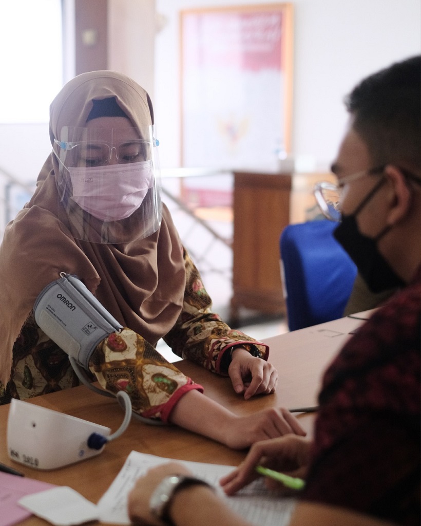 Rangkaian kegiatan diawali dengan pendaftaran peserta dan pengecekan data administrasi yang telah terintegrasi dengan sistem Dispendukcapil dan pemeriksaan suhu tubuh serta tekanan darah oleh petugas. Kemudian dilanjutkan dengan screening riwayat kesehatan oleh tenaga medis. Semua yang lolos pada tahap screening pun memperoleh penyuntikan vaksin Covid-19. Setelah divaksin, peserta vaksinasi harus melalui tahap observasi untuk melihat jika timbul efek samping pasca vaksinasi.